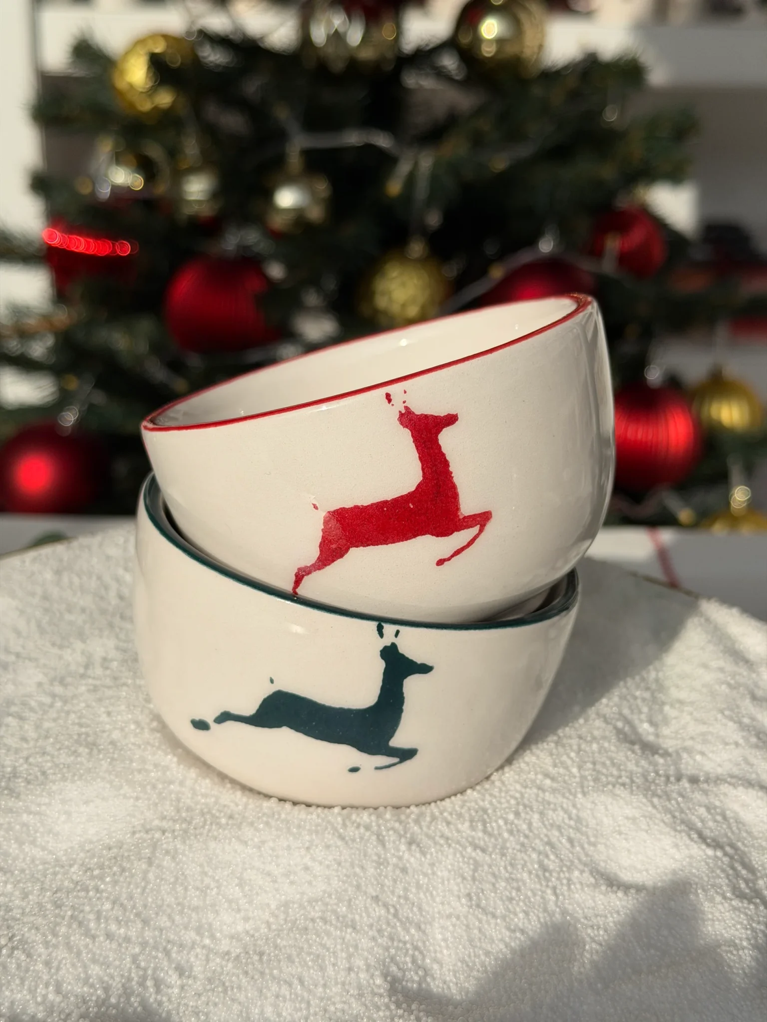 Geyikli Yılbaşı Çerezlik Seti – 2’li Kargo Süresi: 10–15 gün El emeği seramikten üretilen ikili geyik figürlü çerezlik seti, yılbaşı sofralarınıza sıcaklık ve zarafet katan özel bir tasarımdır. Atıştırmalık sunumlarınızı daha şık, daha keyifli ve daha özgün hâle getirir. Her bir parça tek tek elde şekillendirildiği içi
