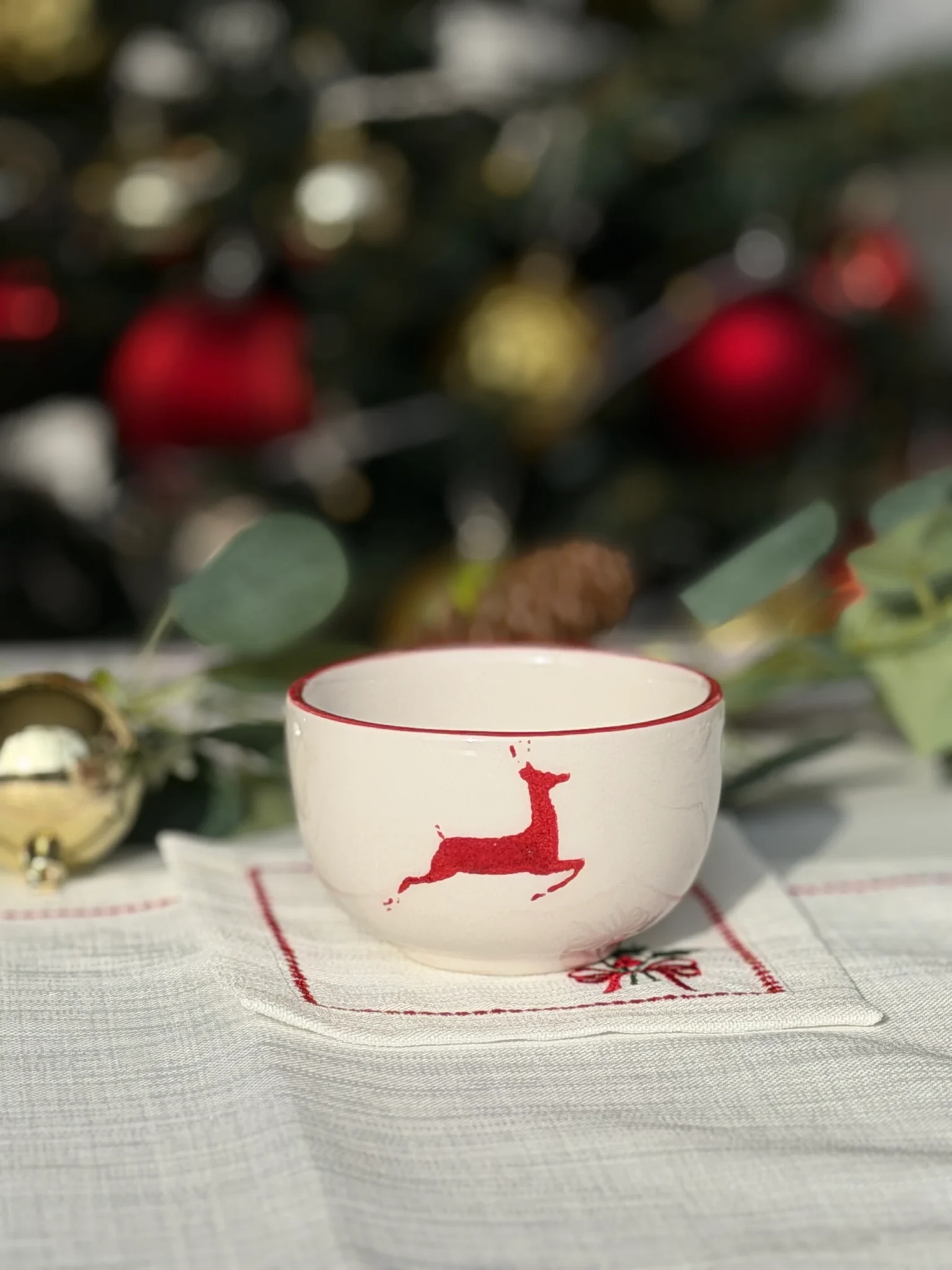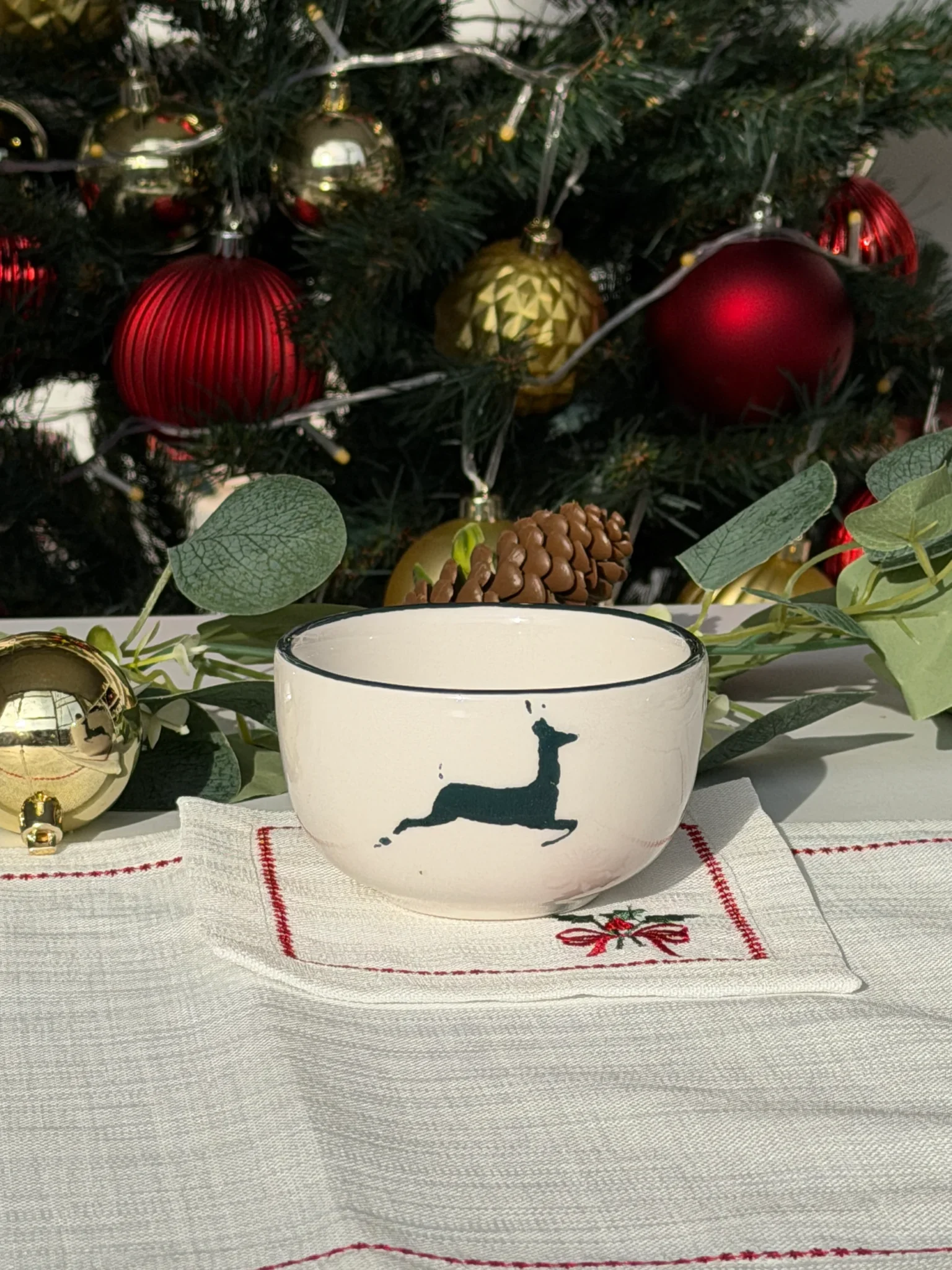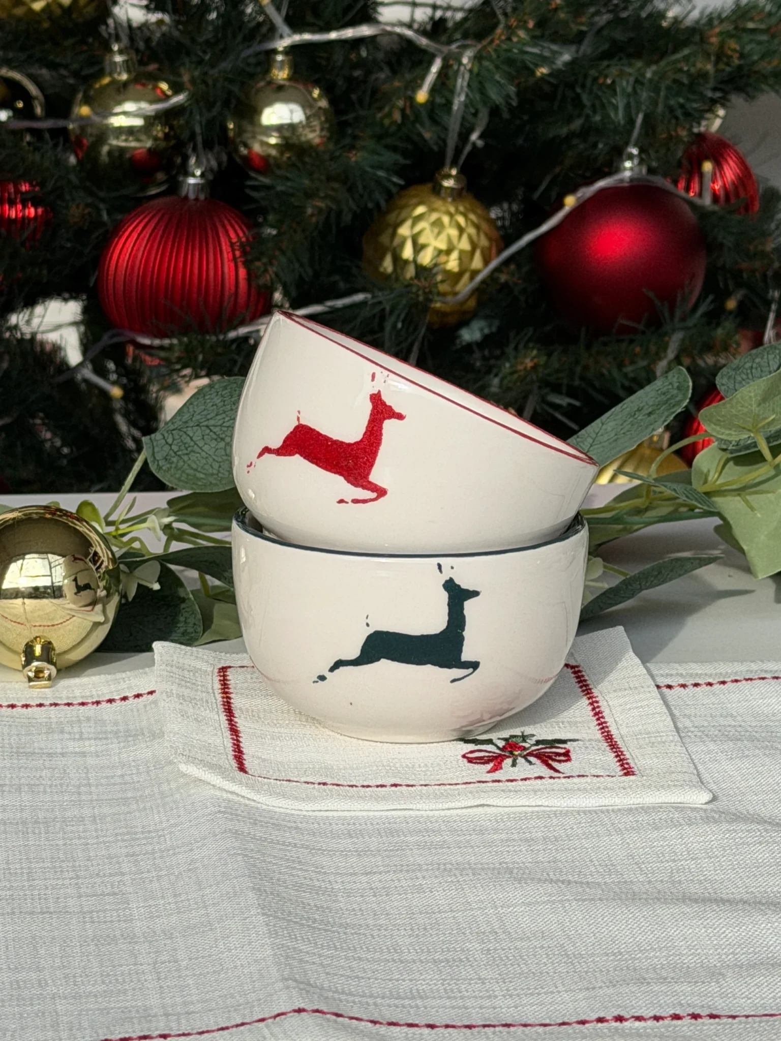 El emeği seramikten üretilen ikili geyik figürlü çerezlik seti, yılbaşı sofralarınıza sıcaklık ve zarafet katan özel bir tasarımdır.
