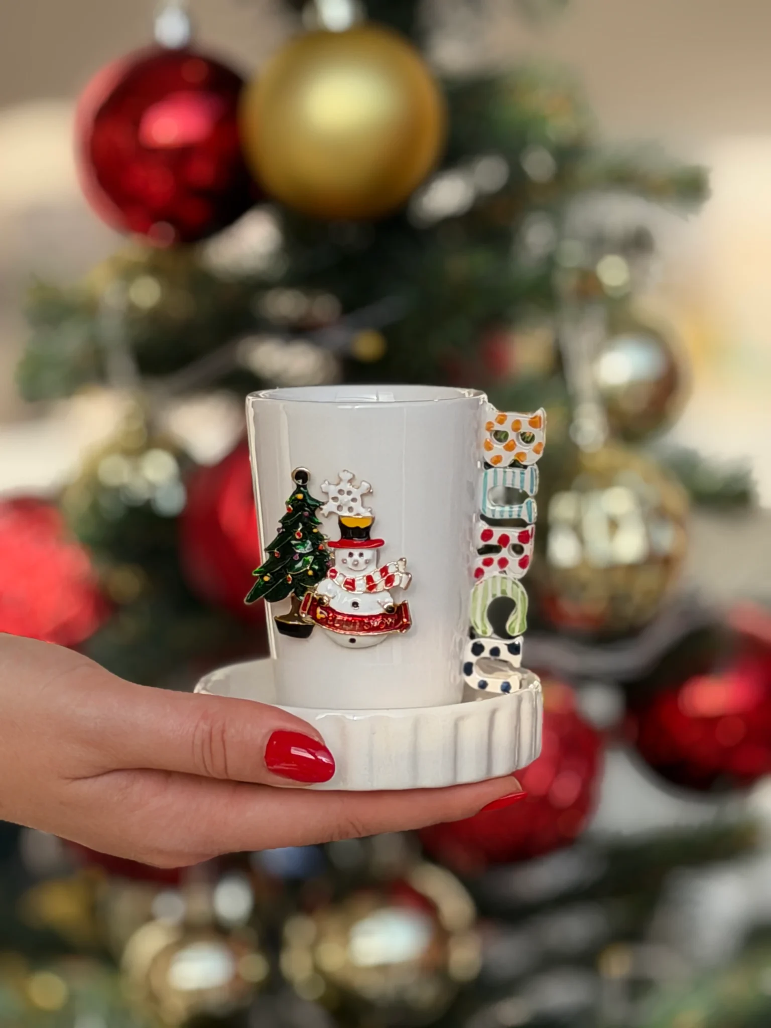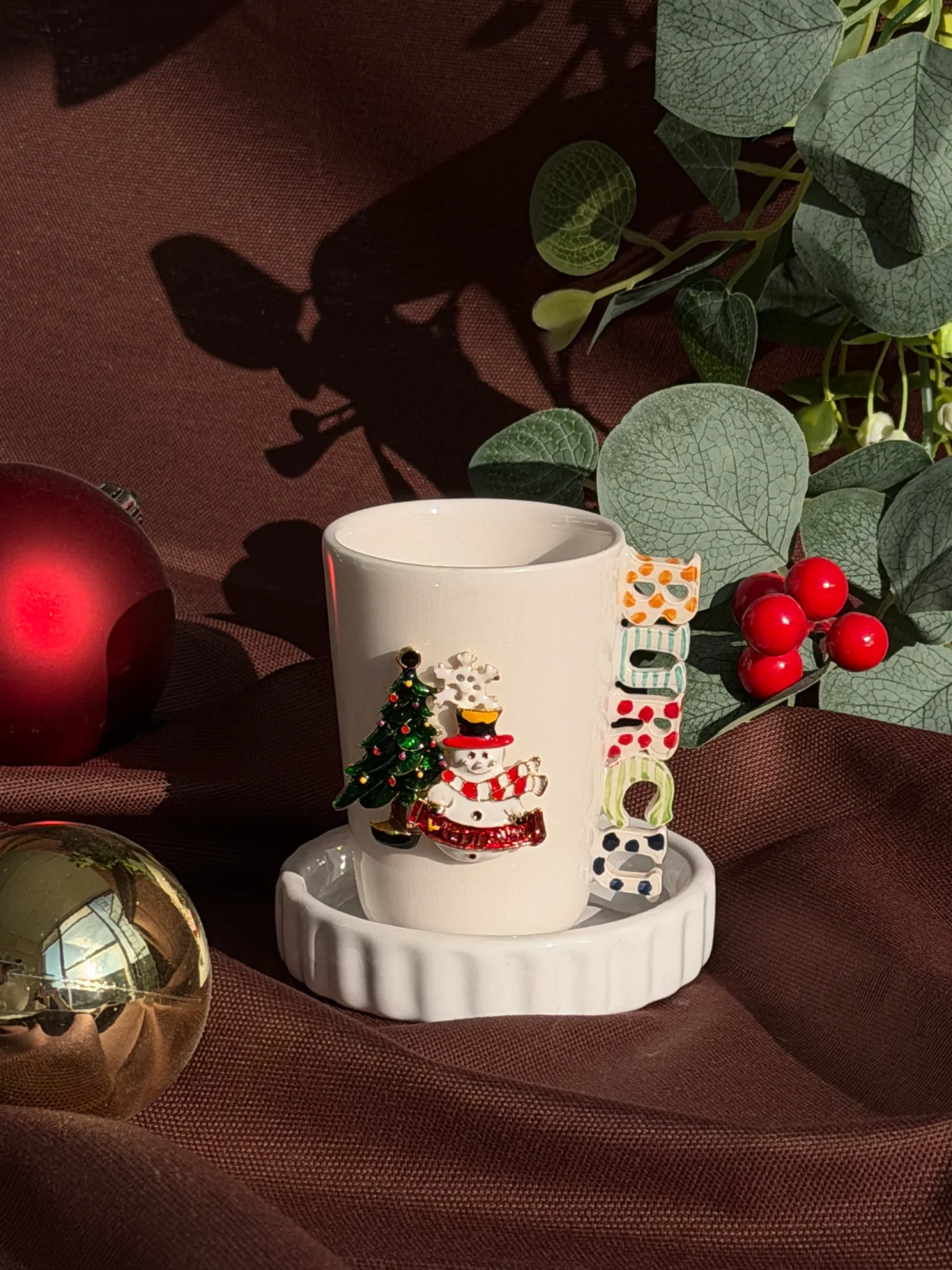 İsimli Kardan Adam & Çam Ağacı Broşlu Fincan