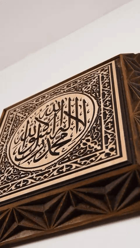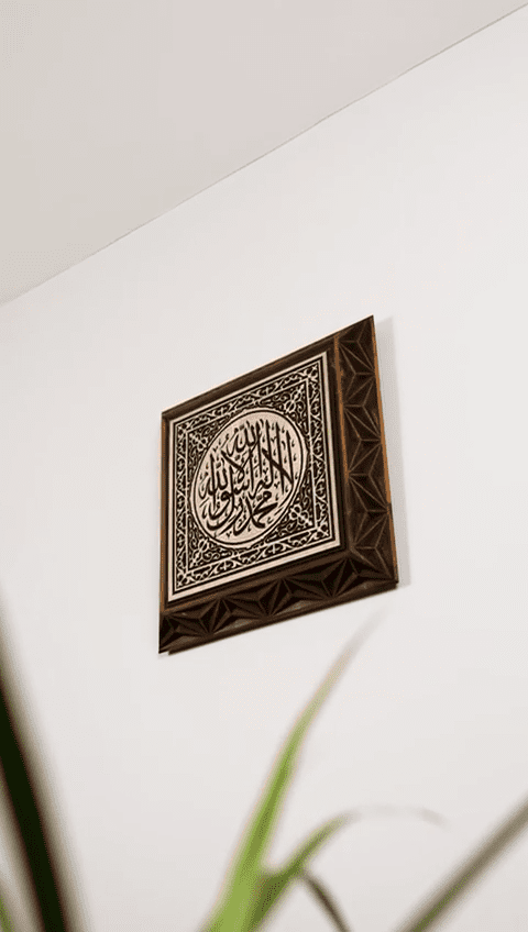 Çambalı Sanat atölyesinde üretilen bu ahşap duvar tablosu, önce CNC oyma tekniği ile hassas şekilde kesilir ve işlenir. Ardından her parça tek tek zımparalanır, kenarları yumuşatılır ve el işçiliğiyle son dokunuşları yapılır. Bu sayede her Kelime-i Tevhid yazılı ahşap duvar tablosu, ahşabın damar yapısı, ton geçişleri ve yüzey dokusu ile kendine özgü bir karakter kazanır. Seri üretim hissinden uzak, butik ve özenli bir İslami duvar dekorasyon ürünü ortaya çıkar.