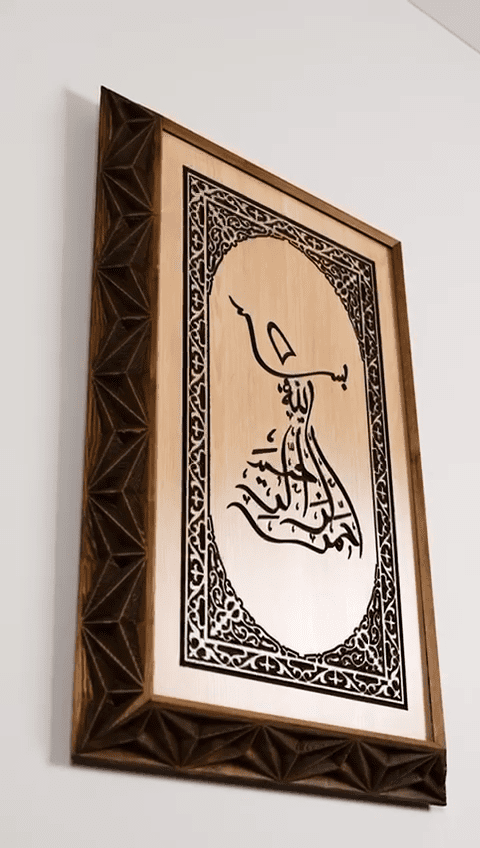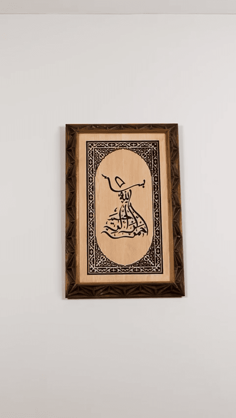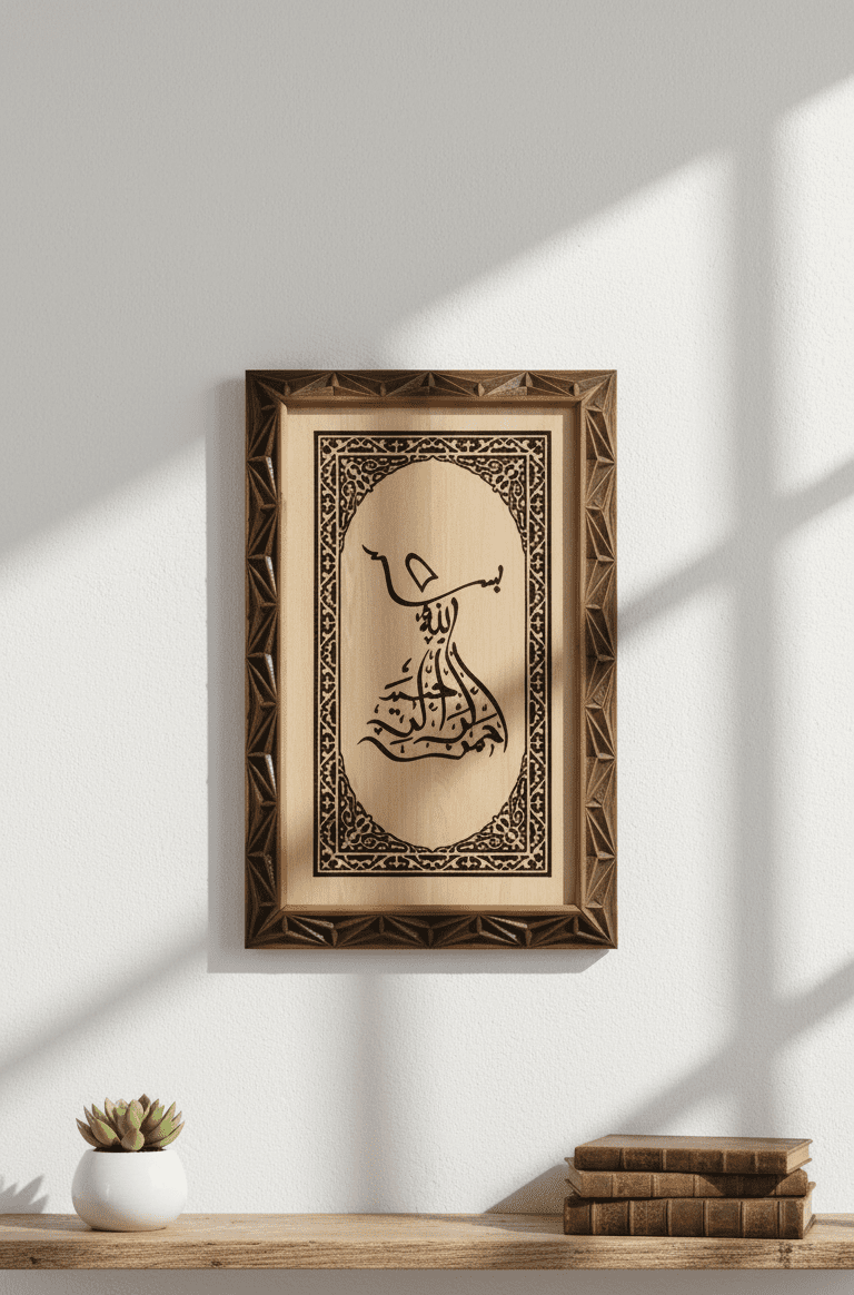 Bu ürün, özellikle İslami tablo arayanlar için tasarlanmış, Besmele-i Şerif yazılı ve semazen figürlü ahşap duvar tablosudur. Tasarımda hem hat sanatı hem de semazen figürü bir araya getirilmiştir. Besmele-i Şerif, her başlangıcı rahmet ve bereketle anmayı simgelerken; semazen figürü, içe dönüşü, teslimiyeti ve Mevlevi geleneğinin zarif çizgilerini temsil eder. Doğal ahşap üzerinde yer alan bu kompozisyon, duvarda yalnızca dekoratif bir görüntü oluşturmakla kalmaz, aynı zamanda her bakışta iç dünyaya ve manevi derinliğe davet eden anlamlı bir İslami tablo olarak öne çıkar.