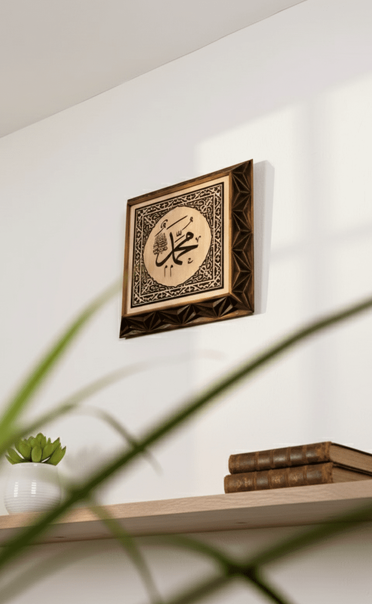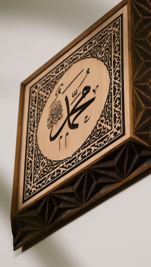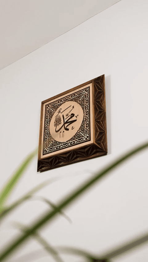 Ayrıca özel günlerde hediyelik olarak da tercih edilebilir. Sevdiklerinize, Hz. Muhammed (S.A.V.) sevgisini ve saygısını yansıtan, uzun yıllar kullanılabilecek kalıcı bir armağan vermek istediğinizde bu ahşap duvar tablosu son derece şık ve yerinde bir seçimdir. Uygun ışıklandırma ile kullanıldığında, hat yazısının çizgileri ve ahşabın dokusu daha belirgin hale gelir; bulunduğu ortama sıcak, huzurlu ve saygı dolu bir atmosfer katar.