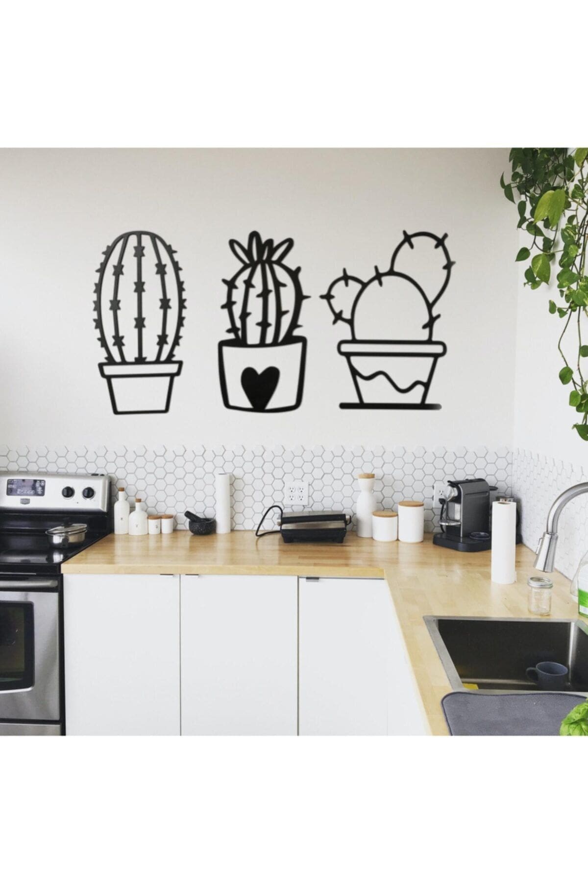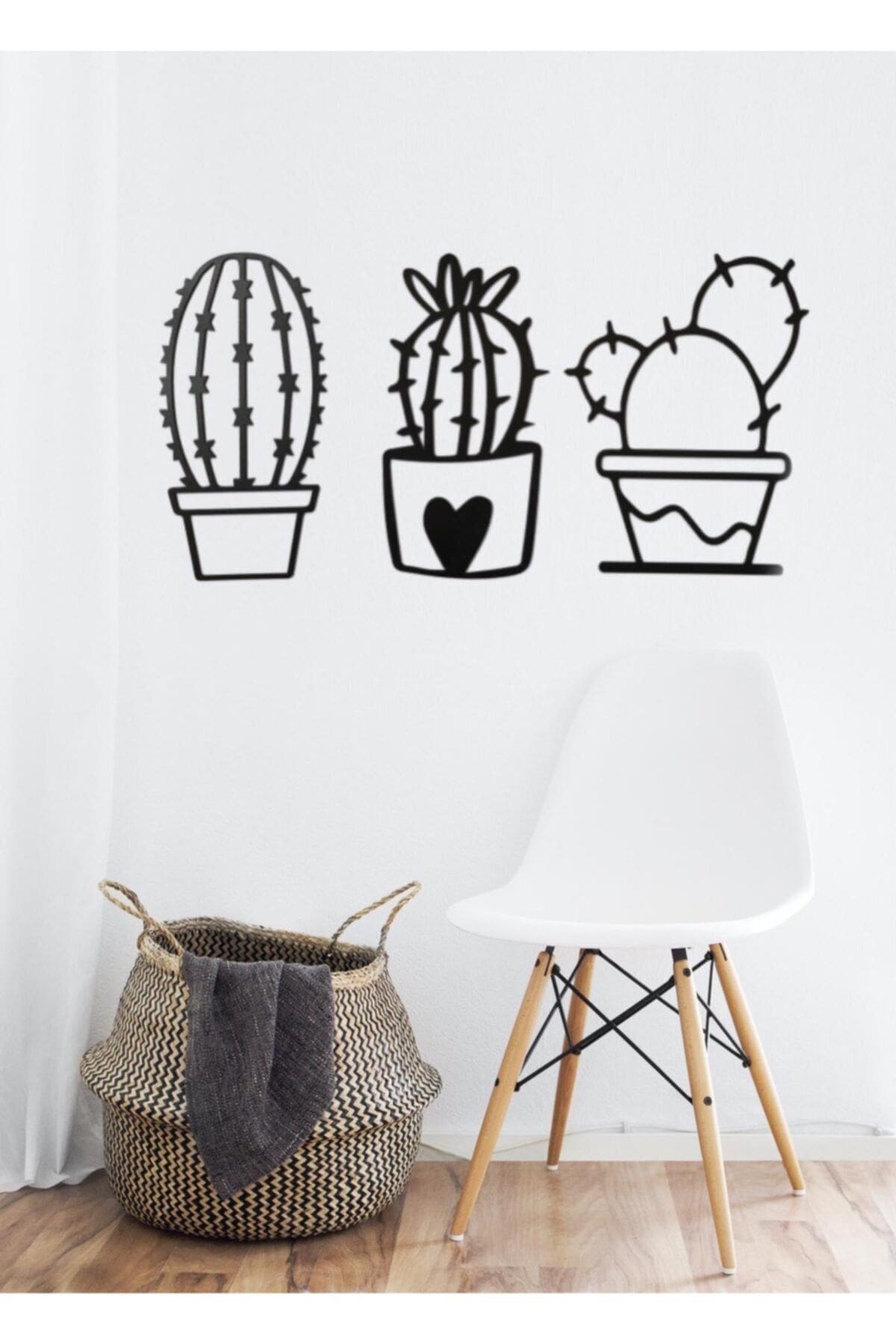 Kaktüsler – Dekoratif Tablo Siyah Mdf – 35×20