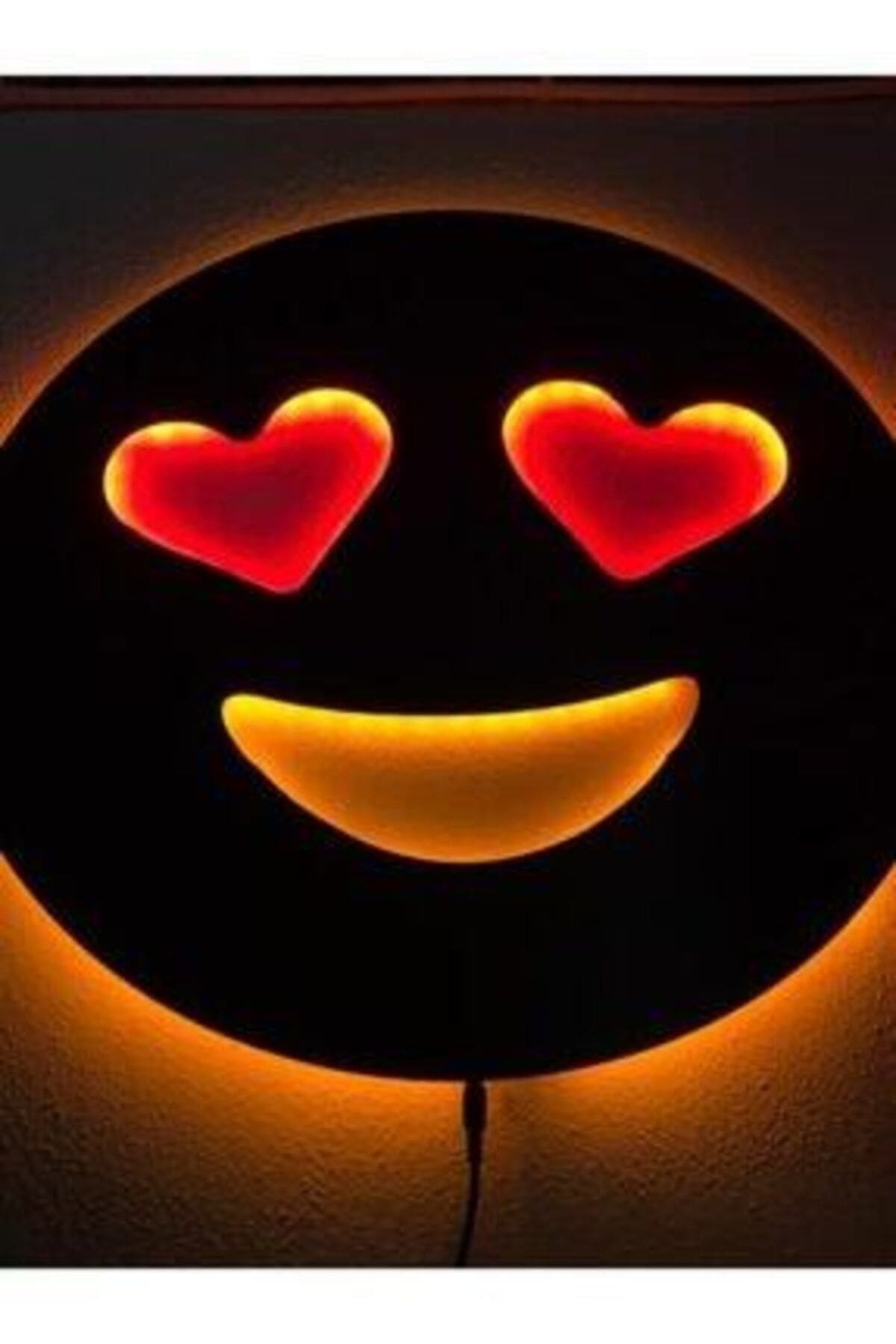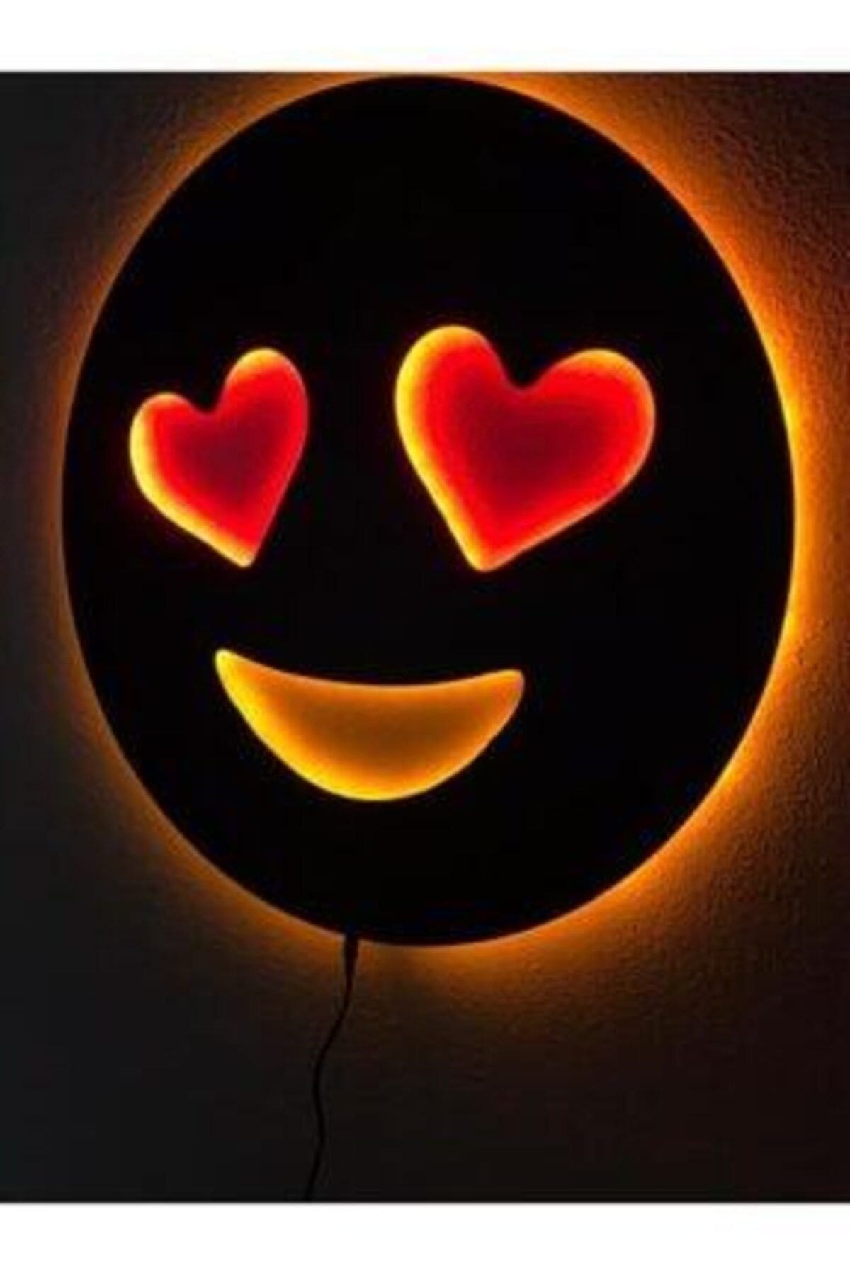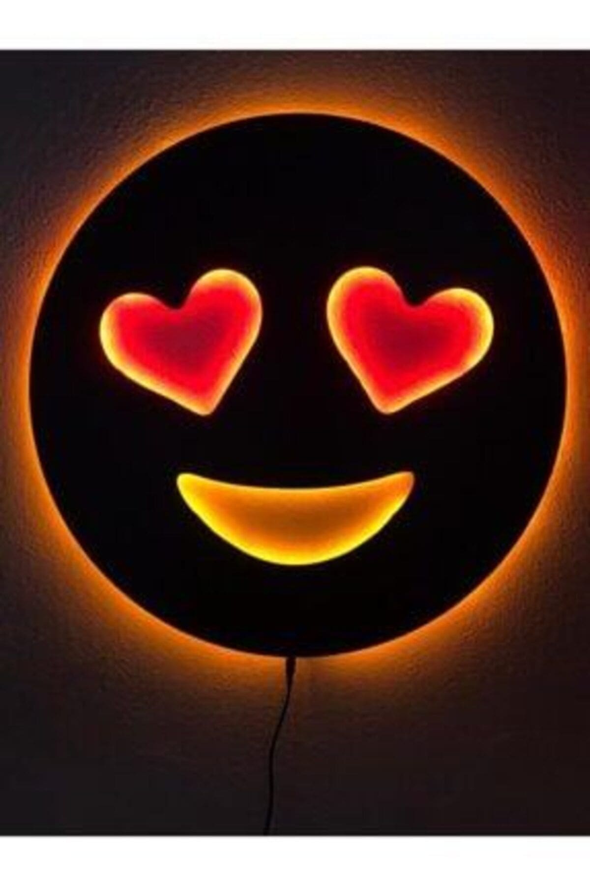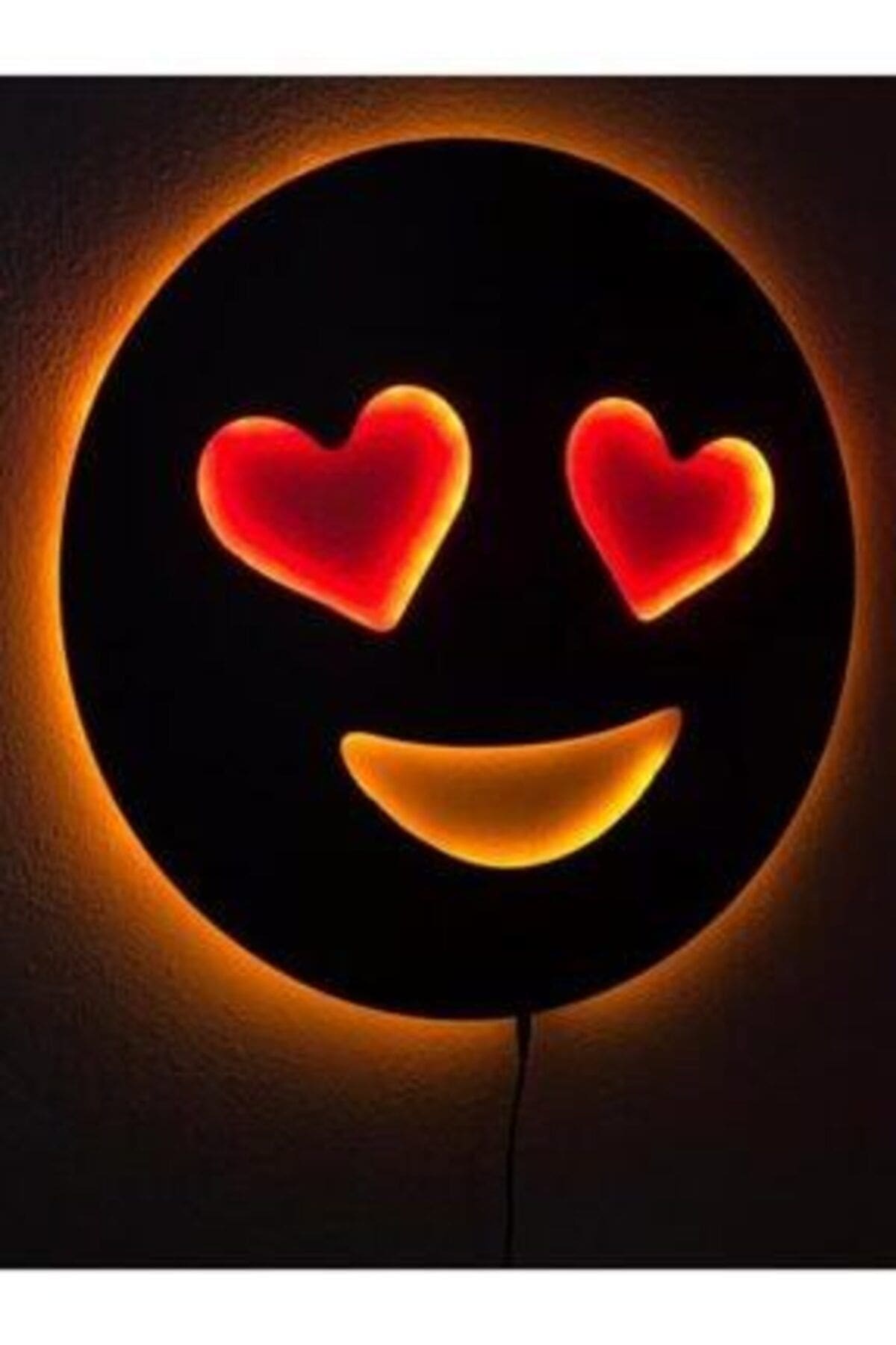 Kalpli Emoji Dekoratif Led Işıklı Ahşap Tablo