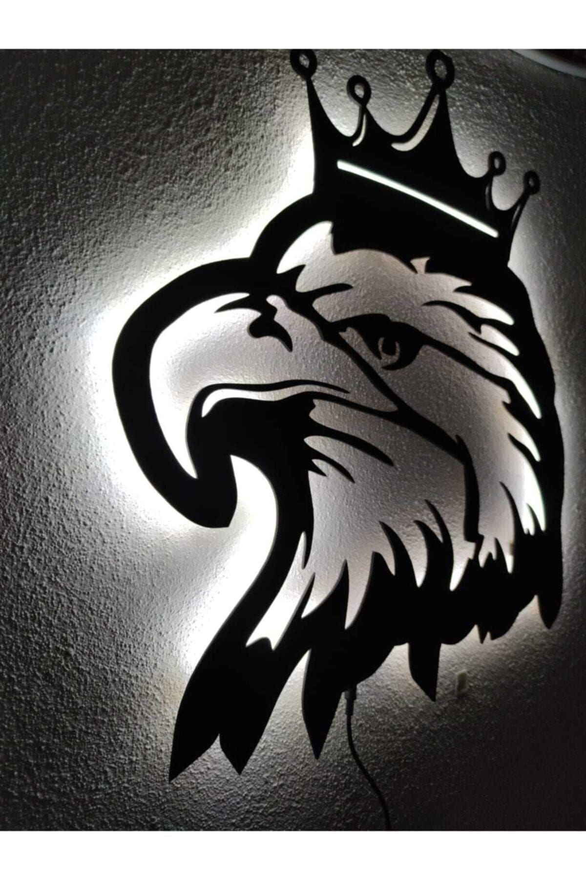3 mm kalınlığında siyah mdf malzemeden lazer kesimle imal edilmektedir.; Ürünlerimizde 12 volt şerit led kullanılmaktadır.; Ürün boyutu: 55×45; Kargo 12v adaptör ve montaj malzemeleriyle gönderilir.; Adaptörü fişe taktığınızda ledleri yanar.; Ürünümüzde beyaz renk led kullanılmıştır.; Ürünü askı aparatından kolayca duvara asabilirsiniz.; Gece lambası olarak kullanılabilir loş ışık sağlar.;