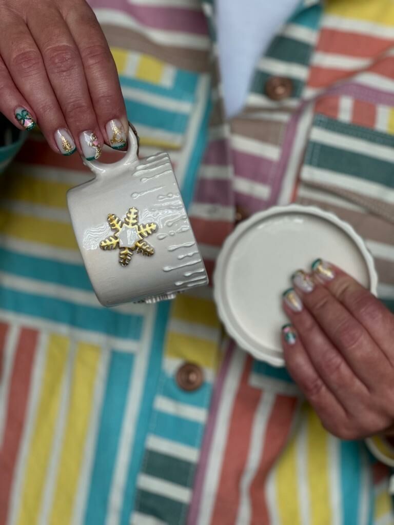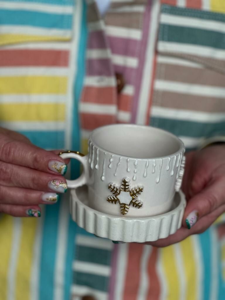 Her bir detayıyla özenle işlenmiş olan, fincana ayrı bir zarafet katarken, parmak izleriyle şekillendirilen seramik malzeme sayesinde her fincan eşsiz bir sanat eserine dönüşür. El yapımı olduğundan dolayı, her fincan birbirinden farklı ve özeldir.