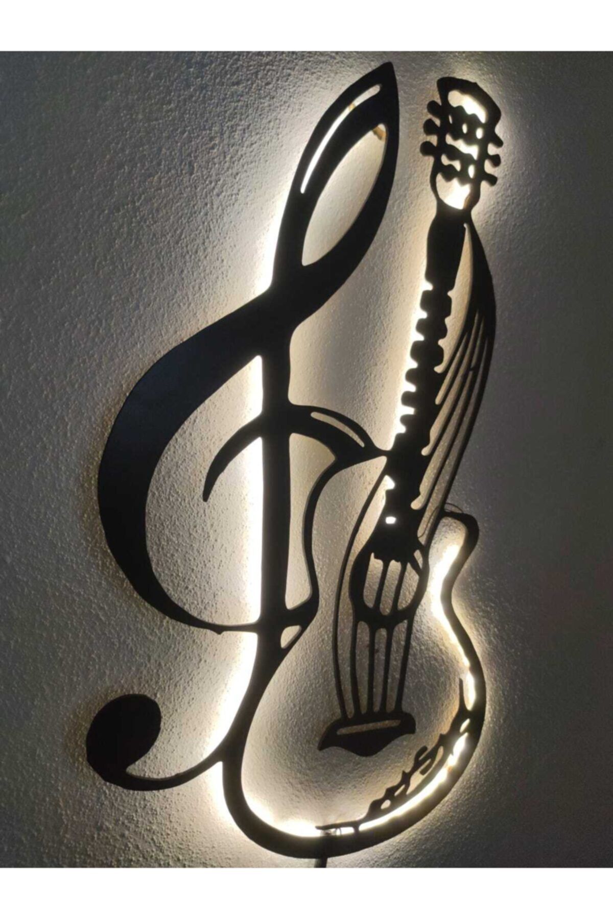 Keman Sol Anahtarı Led Işıklı Ahşap Tablo