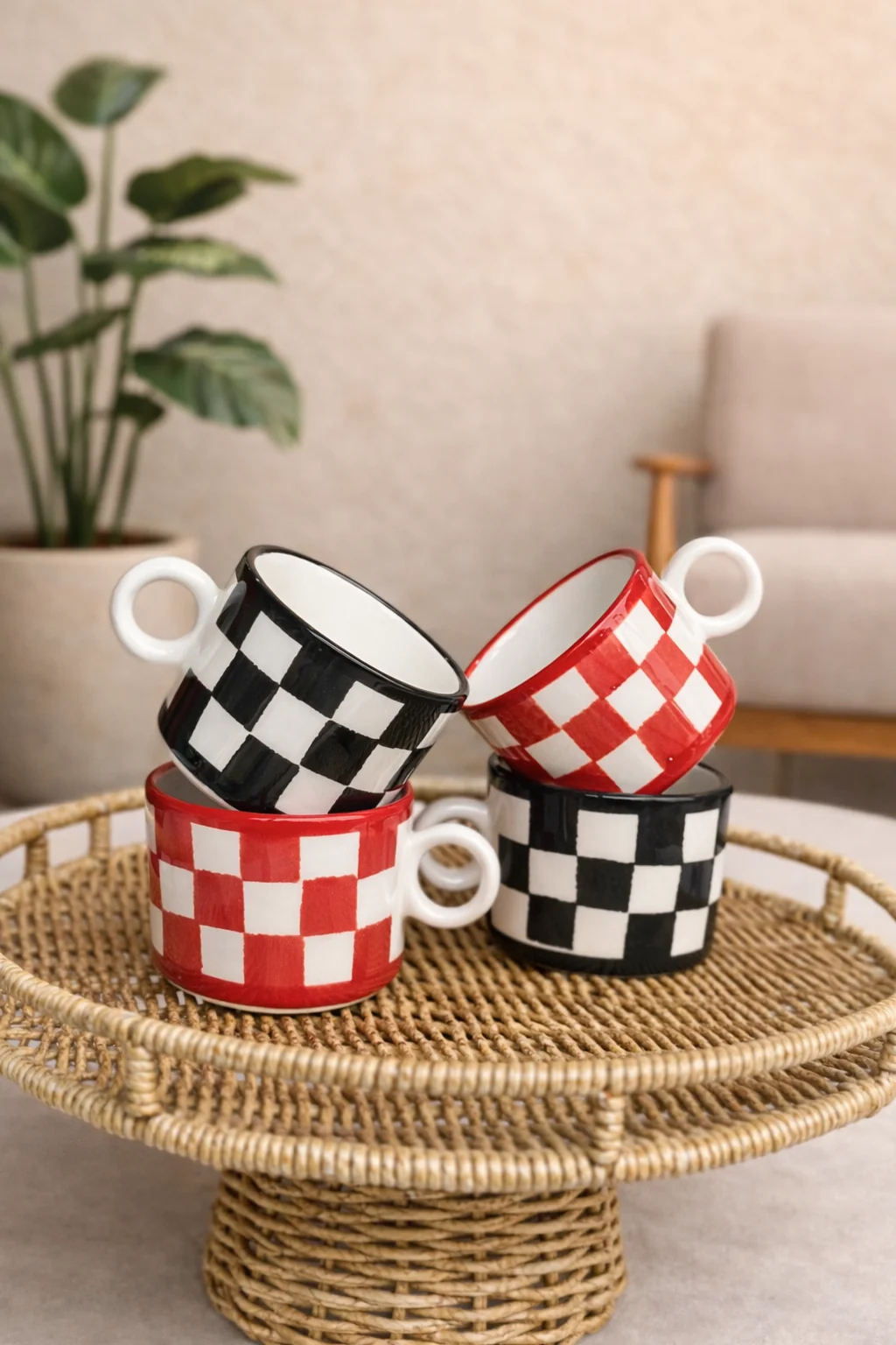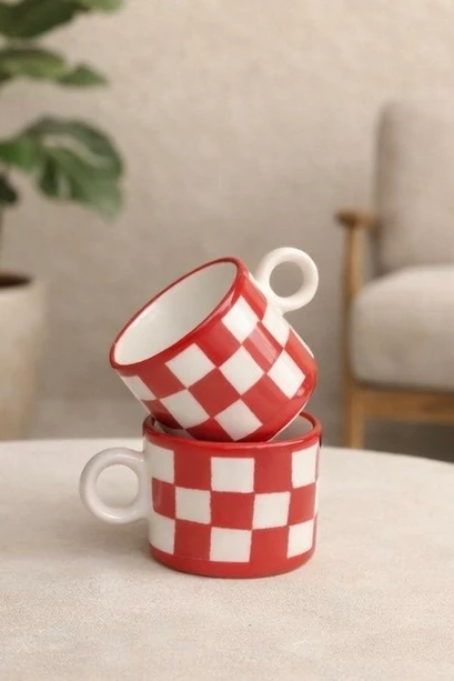 Kırmızı ve siyahın zamansız uyumundan ilham alan bu dama desenli seramik fincanlar, kahve molalarını küçük ama özel anlara dönüştürmek için tasarlandı. Her biri elde şekillendirilen ve tek tek boyanan bu fincanlar, el emeğinin doğallığını ve seramiğin sıcak dokusunu yansıtır.
