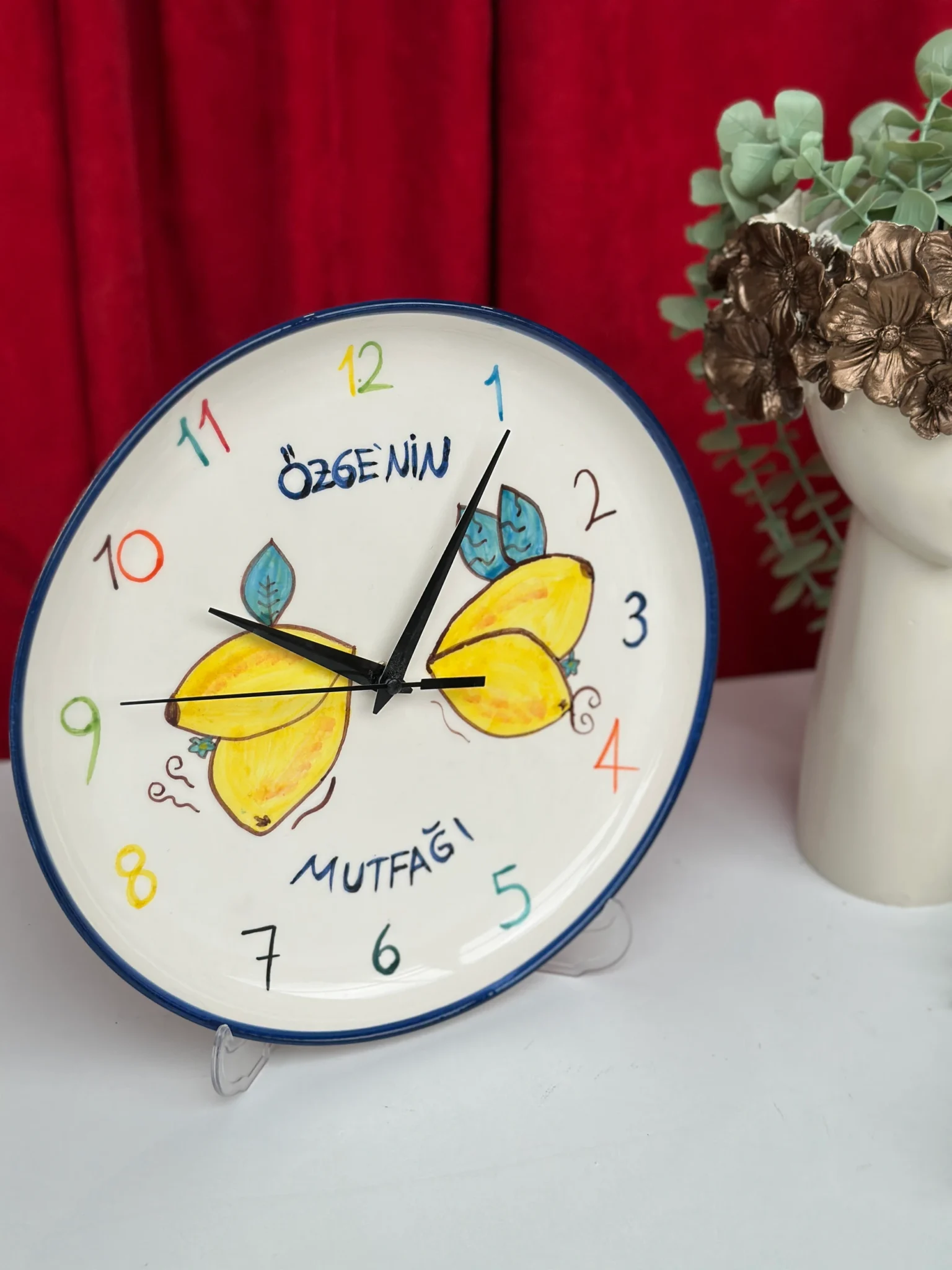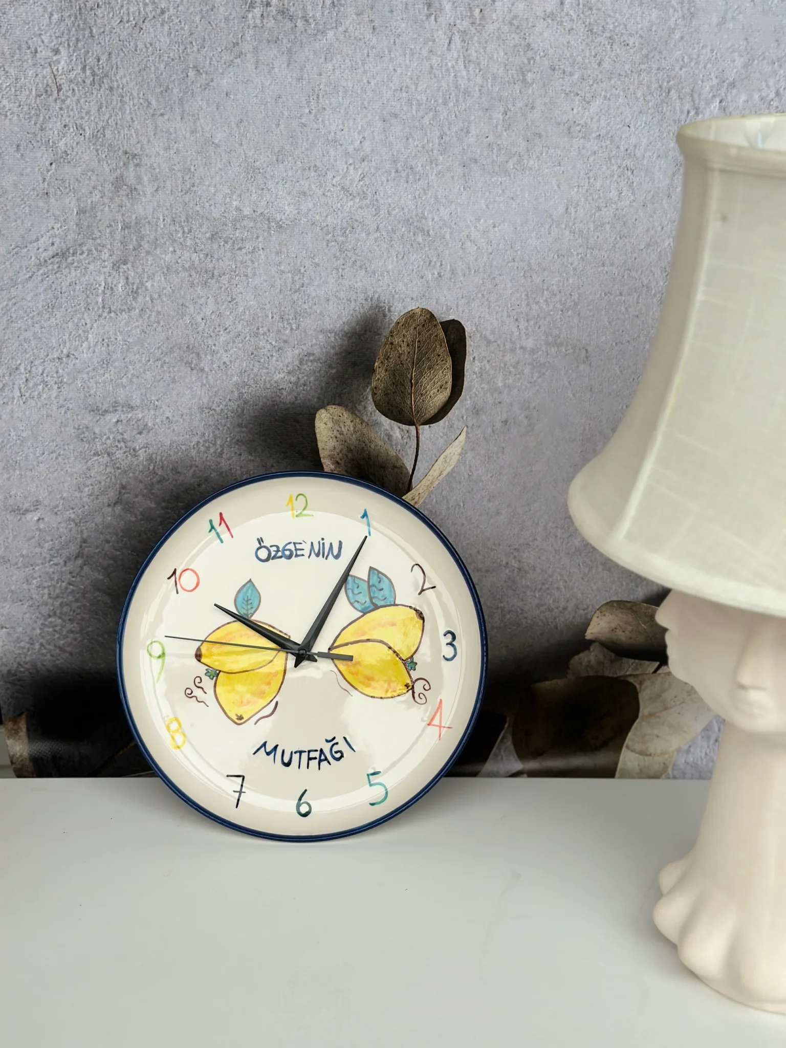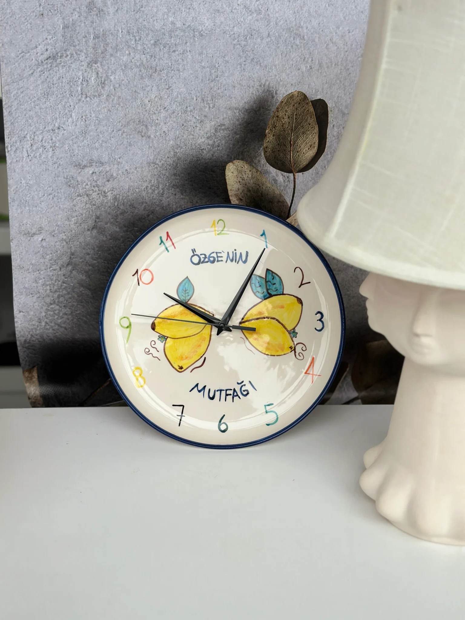 Kişiye Özel İsimli Limon Desenli Seramik Mutfak Saati – 27 cm