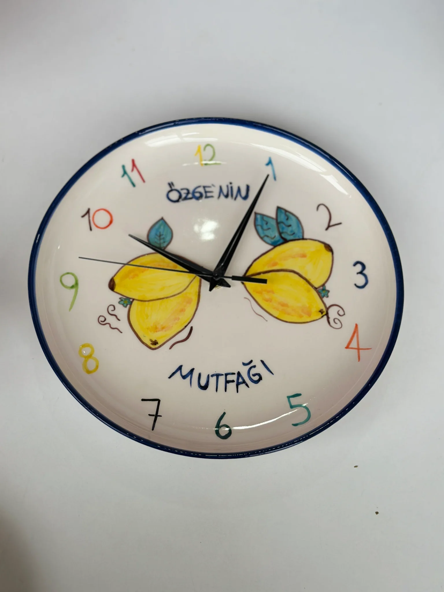 İsminize özel olarak hazırlanan tasarımı sayesinde mutfağınızda size ait bir dokunuş yaratır. El yapımı olması sebebiyle her saat kendine özgüdür ve mutfağınıza sıcak, samimi bir karakter kazandırır.