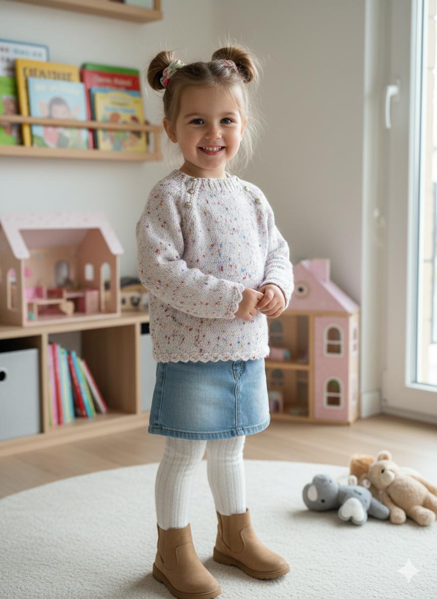 Renkli dokuma detaylarıyla hareketlenen bu yumuşacık kız çocuk kazağı, hem şık hem de rahat bir kullanım sunar. Hassas ciltler için uygun yapısıyla gün boyu konfor sağlar. Her ürün sipariş üzerine, tamamen kişiye özel olarak özenle hazırlanır. ölçü ve tercihlerinize göre üretildiği için benzersizdir. Üretim süresi 1-2 hafta olup, el emeği ile hazırlanmaktadır.