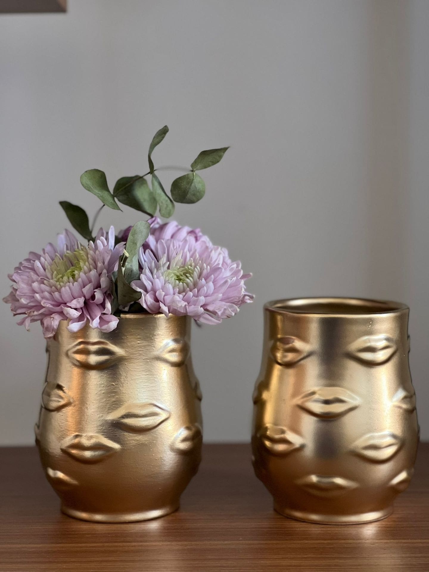 Dudak figürlü özel tasarım vazo, evinize veya ofisinize modern bir dokunuş katmak için mükemmel bir seçenektir. Bu el yapımı vazo, zarif bir siluet ve benzersiz bir tasarıma sahiptir. Sıradışı dudak figürü, vazonun göz alıcı bir görünüme sahip olmasını sağlar.