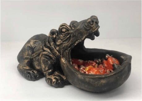Ağzında şeker taşıyan MeGg Hippopotam 30 ürünümüz betondan yapılmıştır. Evinizde ya da iş yerinizde müşteri karşılaması yaptığınız alanlarda sunabileceğiniz çok hoş bir decor ürünüdür.  Ürün kendi atölyemizde tarafımızdan yapılmaktadır. İstediğiniz renk boyayı sipariş esnasında bildirdiğiniz taktirde MeGg Hippopotam ürününü size özel boyamaktayız.