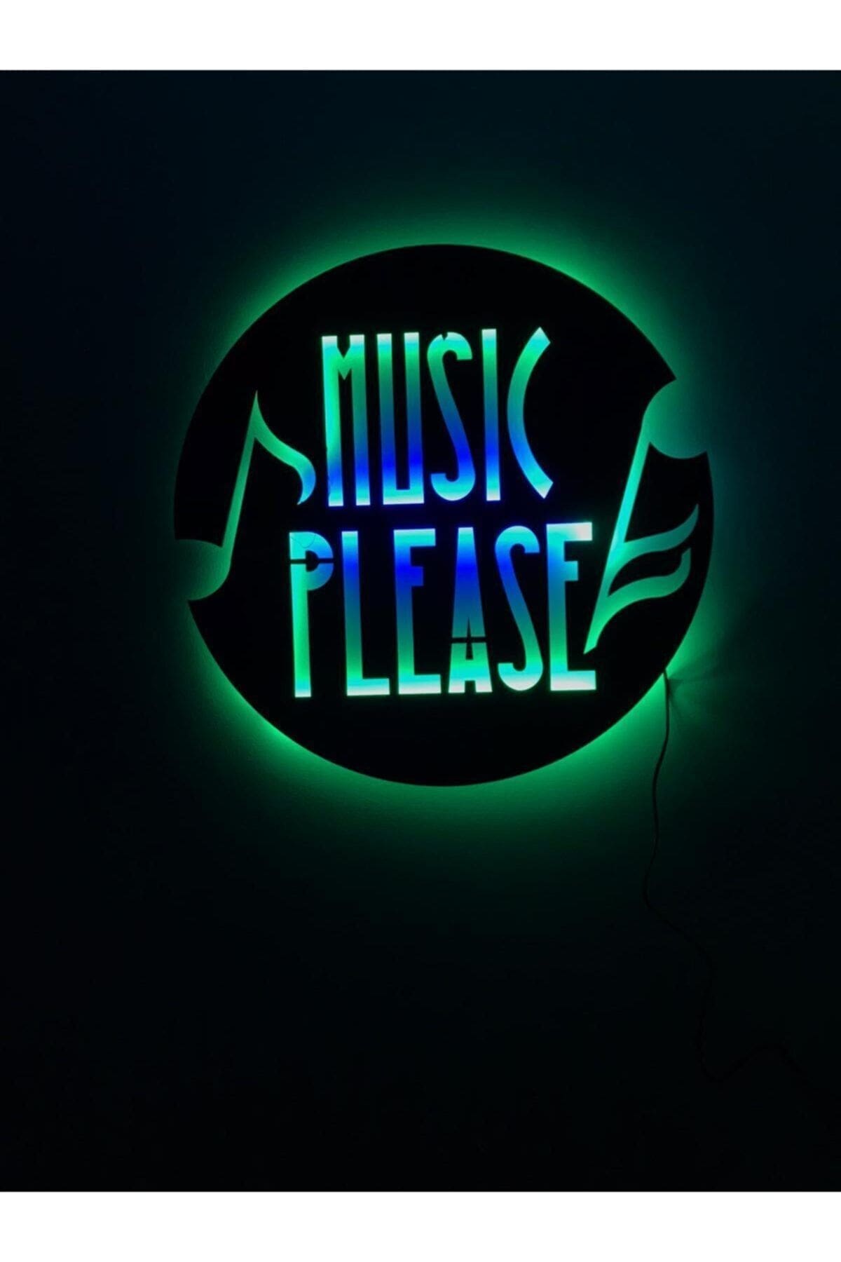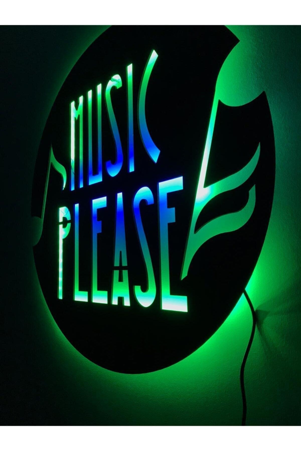 Müzik – Ledli , Siyah Ahşap Tablo – 50×50