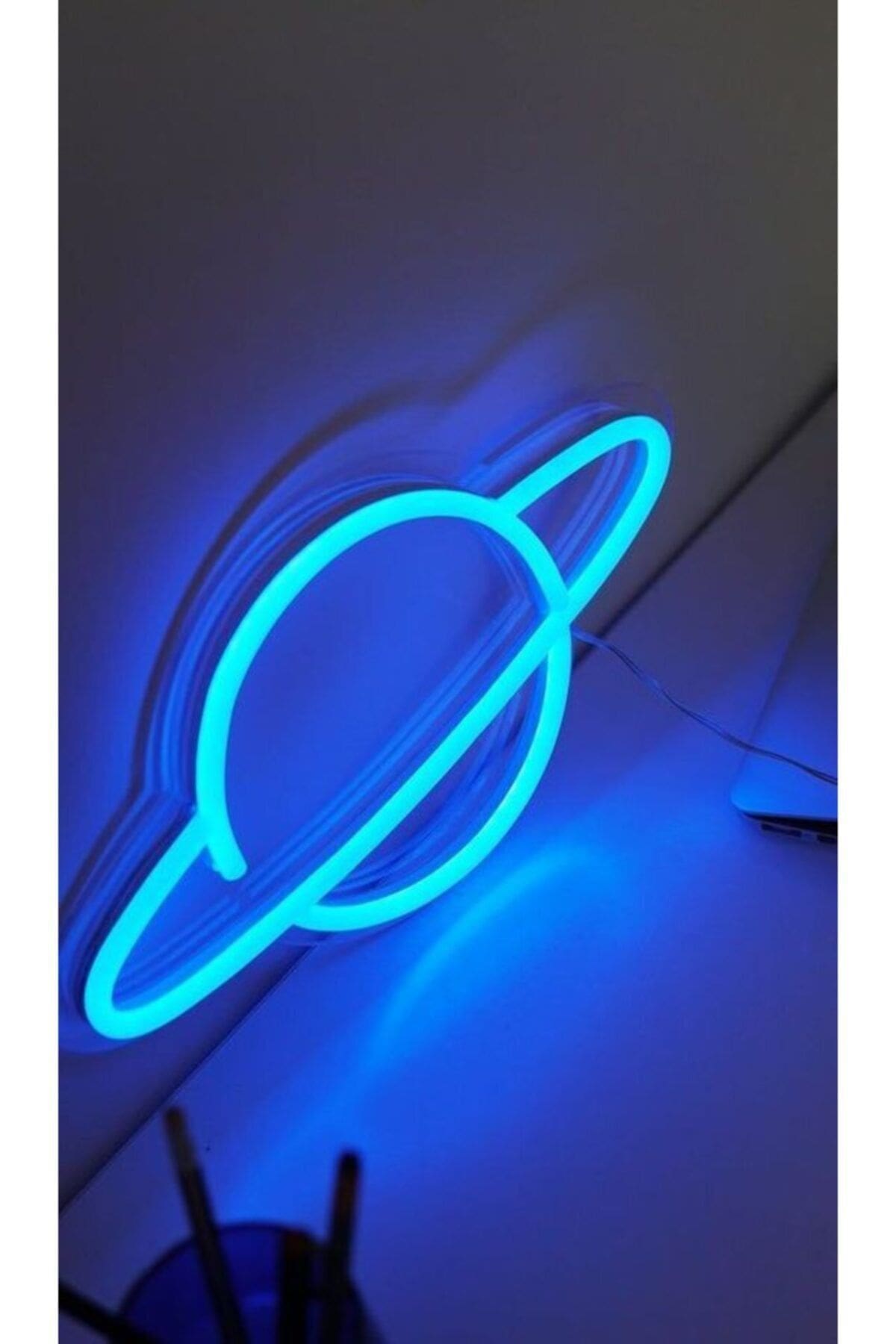 Neon Led Aydınlatma Saturn Gece Lambası Parti Süsü Işıklı Duvar Dekor