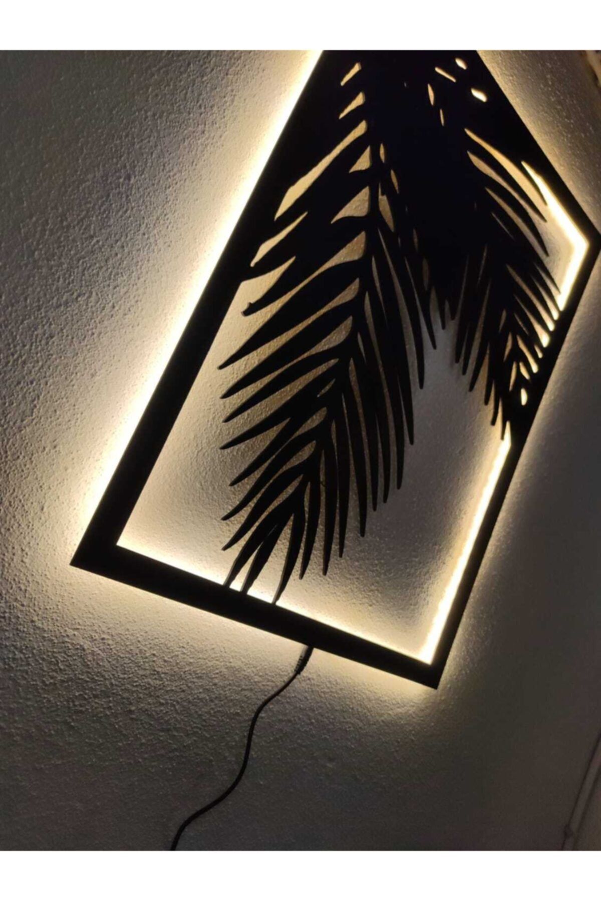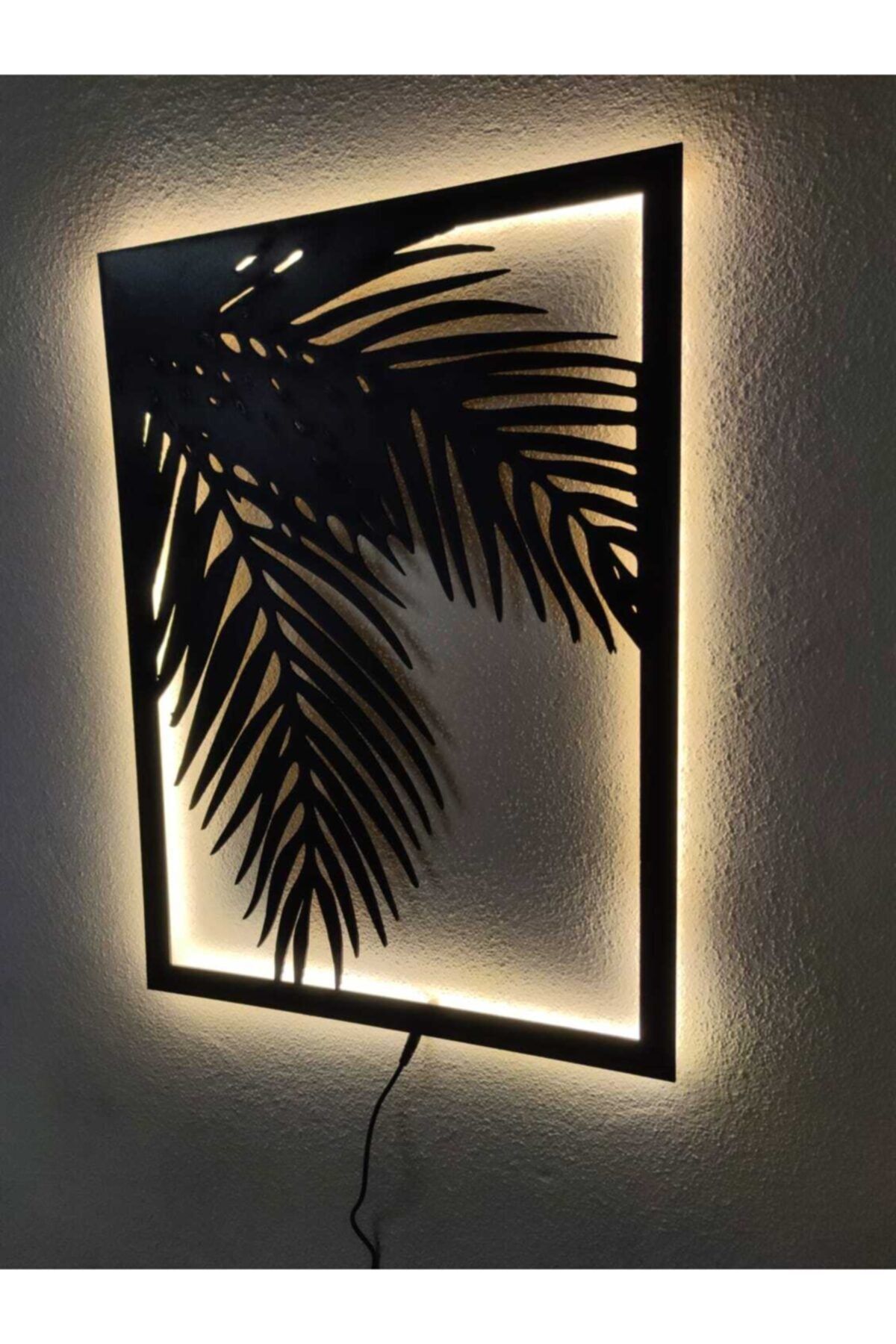 Doğal ahşap malzemesiyle üretilmiş, dayanıklı ve uzun ömürlü kullanım sunar; Palmiye desenli tasarımıyla mekanınıza tropikal bir hava katar ve dekoratif bir dokunuş sağlar; LED ışıkları sayesinde gece veya loş ışıkta bile estetik görünümünü korur ve aydınlatma sağlar; Kolay montaj imkanı sunarak, duvar dekorasyonunuza hızlıca ekleyebilirsiniz;