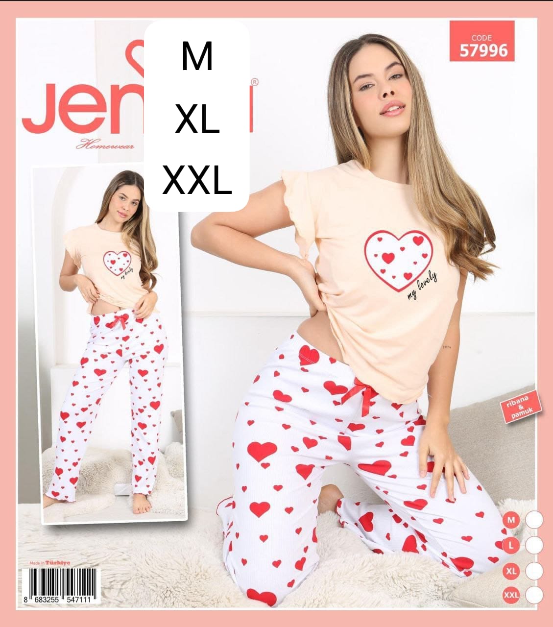 “Sevimli kalp desenleriyle konforlu ve şık uyku keyfi.”