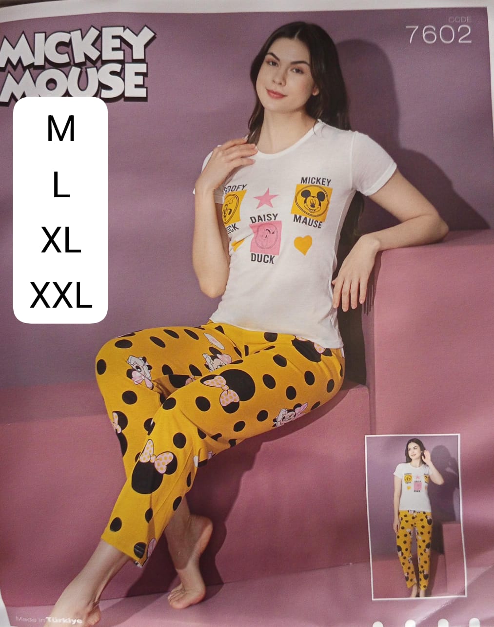 Sarı Mickey Mouse desenli pijama takımıyla hem rahat hem enerjik görün 💛 Yumuşacık kumaşıyla gün boyu konfor!