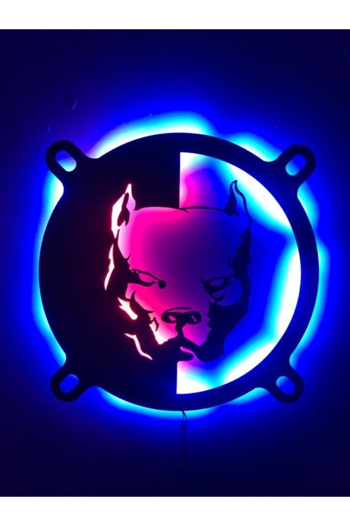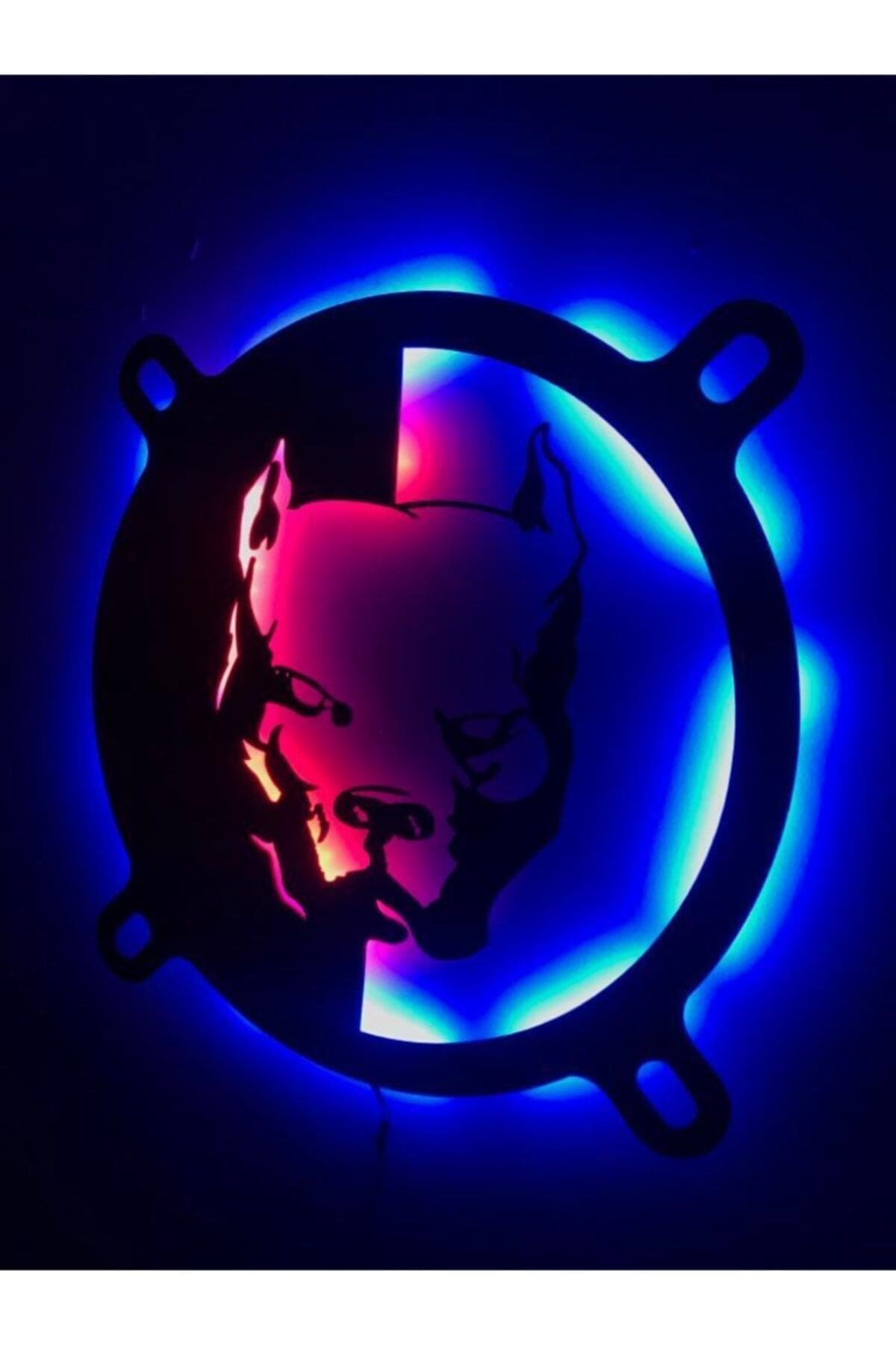 3 mm kalınlığında siyah mdf malzemeden lazer kesimle imal edilmektedir.; Ürünü çiviye asabilir yada çift taraflı bantla montajını sağlayabilirsiniz.; Ürünlerimizde 12 volt şerit led kullanılmaktadır.; Ürün boyutu : 47 x 47 cm; 12 volt 1 amper fişli adaptör ile beraber yollanıcaktır.; Adaptörü fişe taktığınızda ledleri yanar.; Ürünümüzde kırmızı ve mavi renk led kullanılmıştır.; Gece lambası olarak kullanılabilir ortama loş ışık sağlar.; Odanıza , işyerlerinize ve duvarlarınıza renk katıcak bir dekorasyon ürünü.;