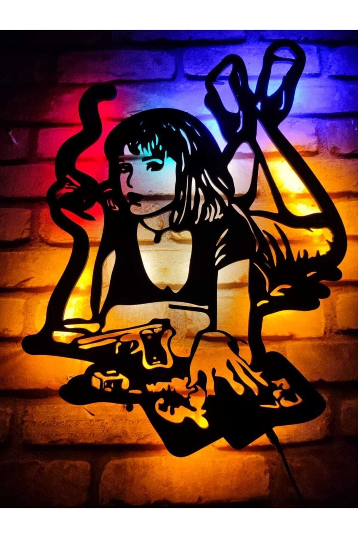 Pulp Fiction Mia Wallace Led Işıklı Ahşap Tablo -duvar Dekorasyonu
