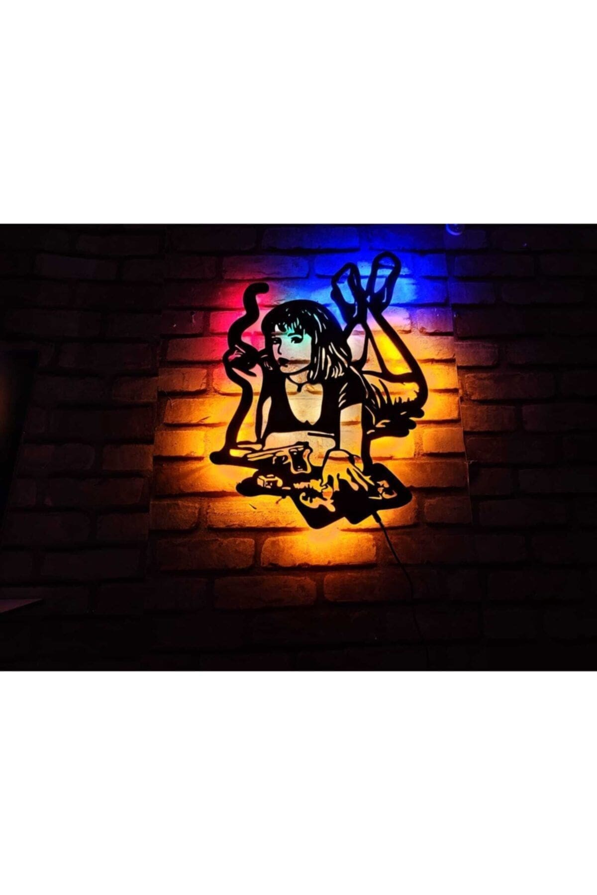 LED ışıklı tasarımı sayesinde, gece veya loş ışıkta bile estetik görünümünü korur ve aydınlatma sağlar; – Pulp Fiction Mia Wallace karakterinin özgün tasviri, duvar dekorasyonunuza modern ve sanatsal bir dokunuş katar; – Duvar dekorasyonu olarak evinizin veya ofisinizin atmosferini zenginleştirir ve kişisel zevkinizi yansıtır;