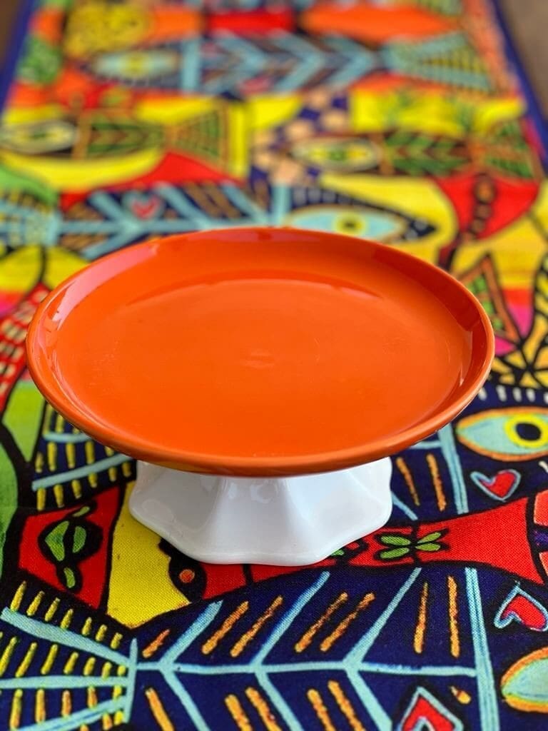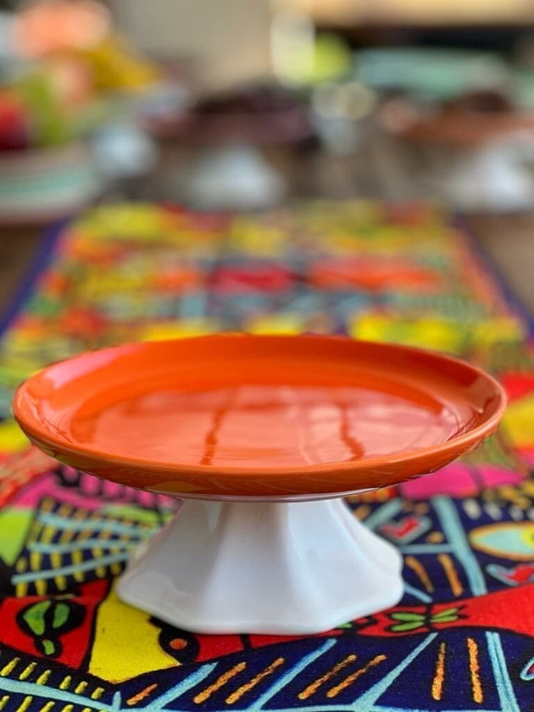 Rengarenk Soft Turuncu Ayaklı meyvelik sunum kasesi kek standı Çap 21cm yükseklik 10 cm