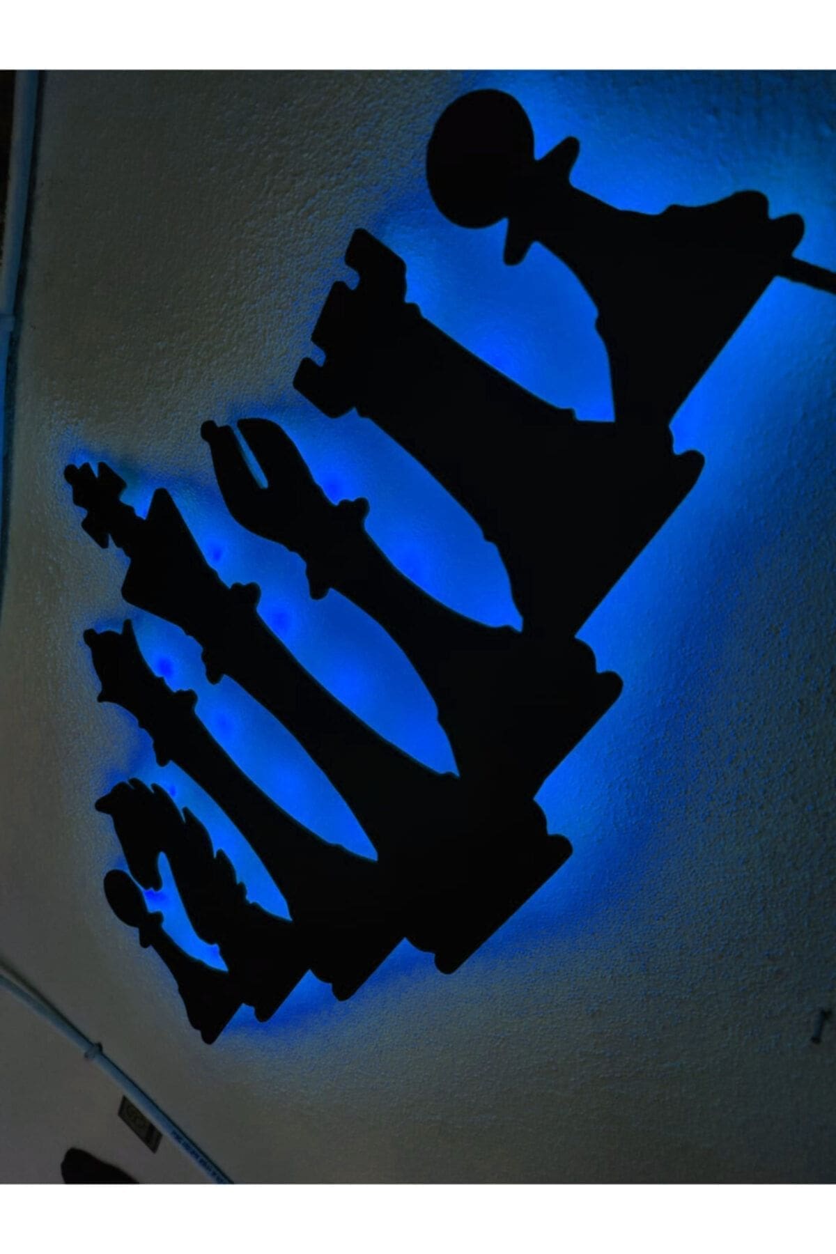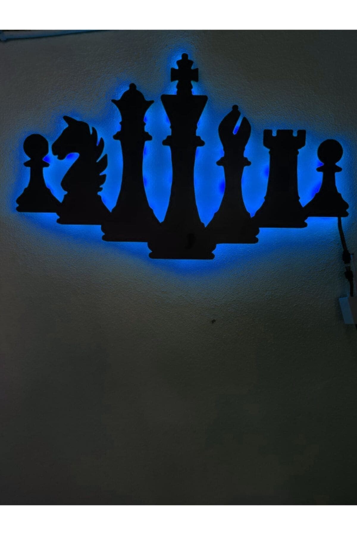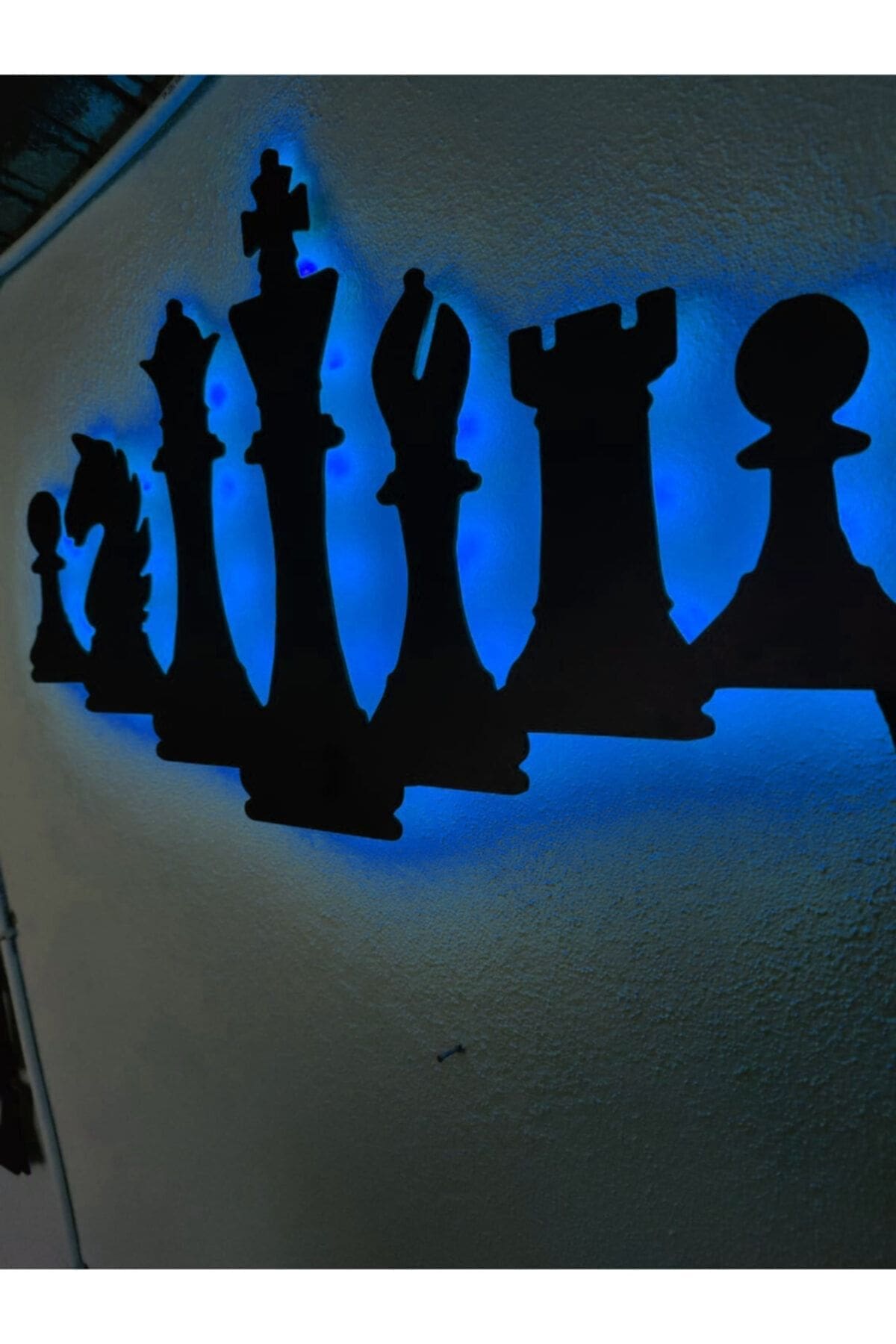 Satranç Led Işıklı Ahşap Dekoratif Tablo