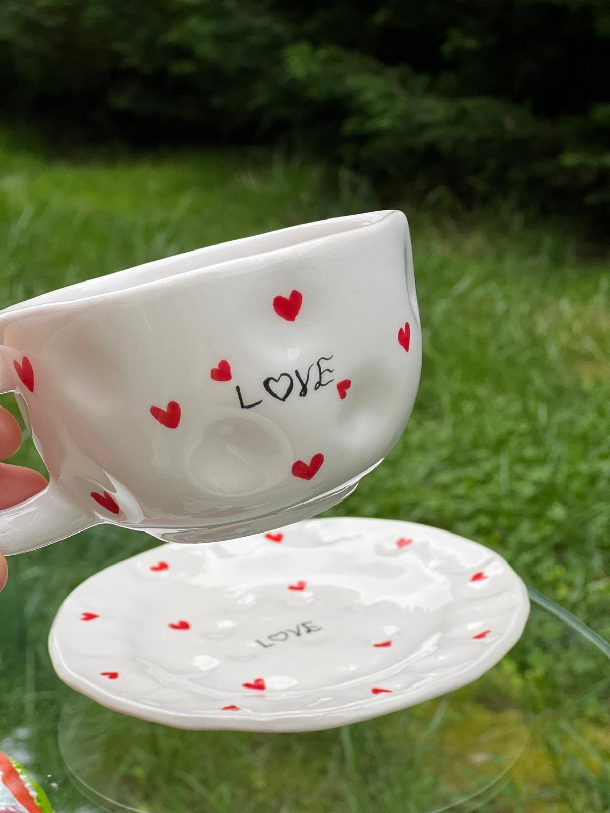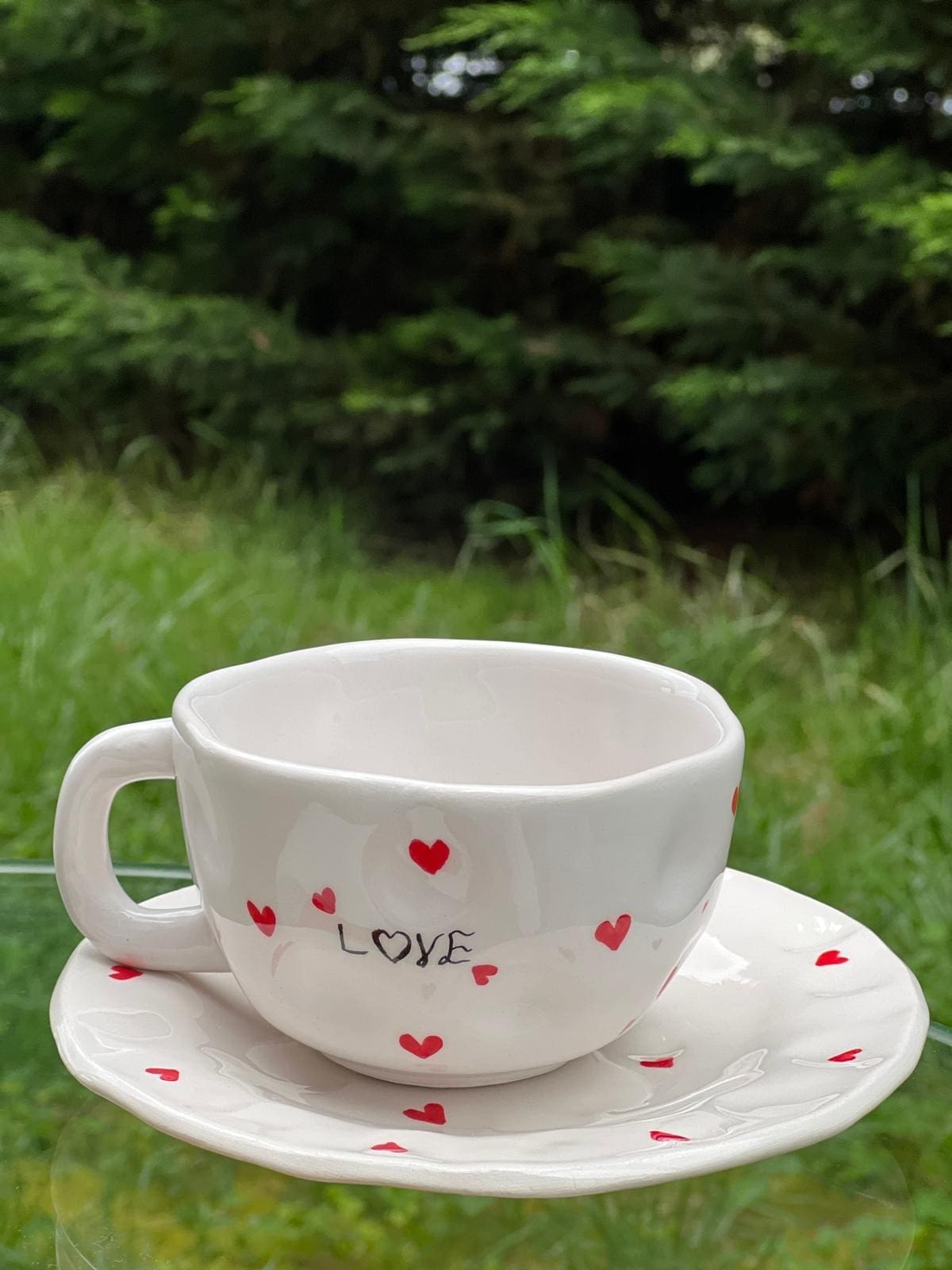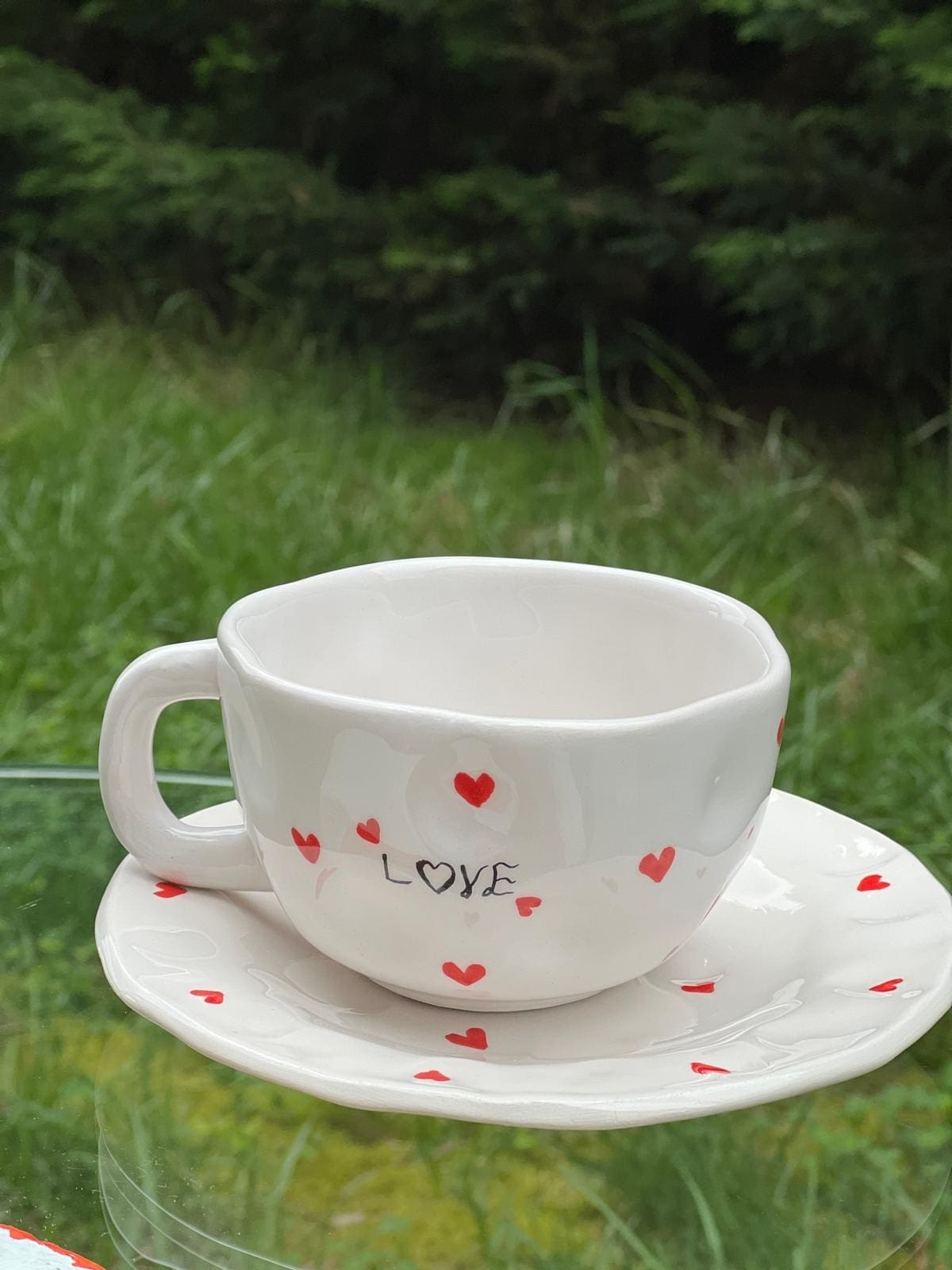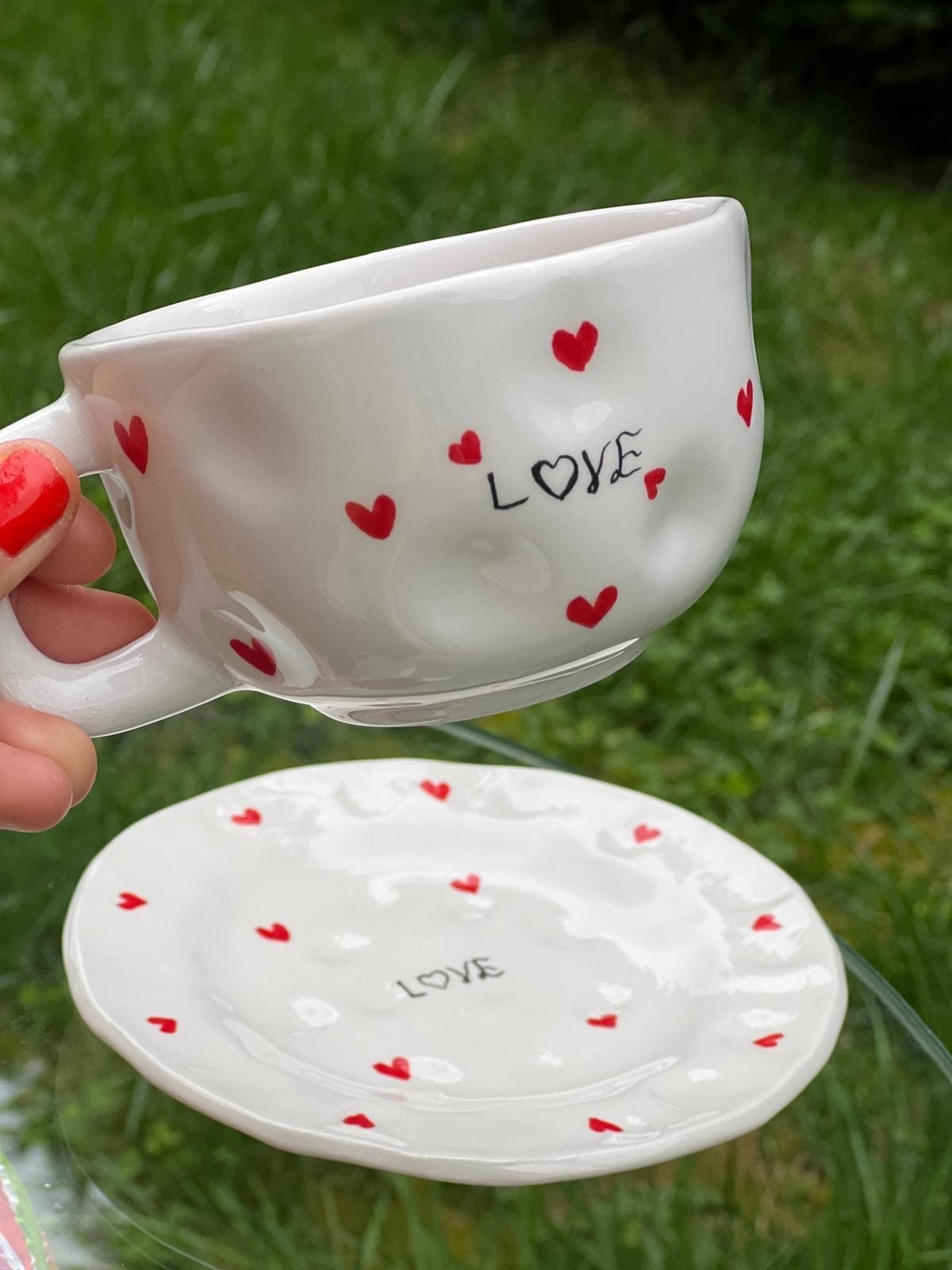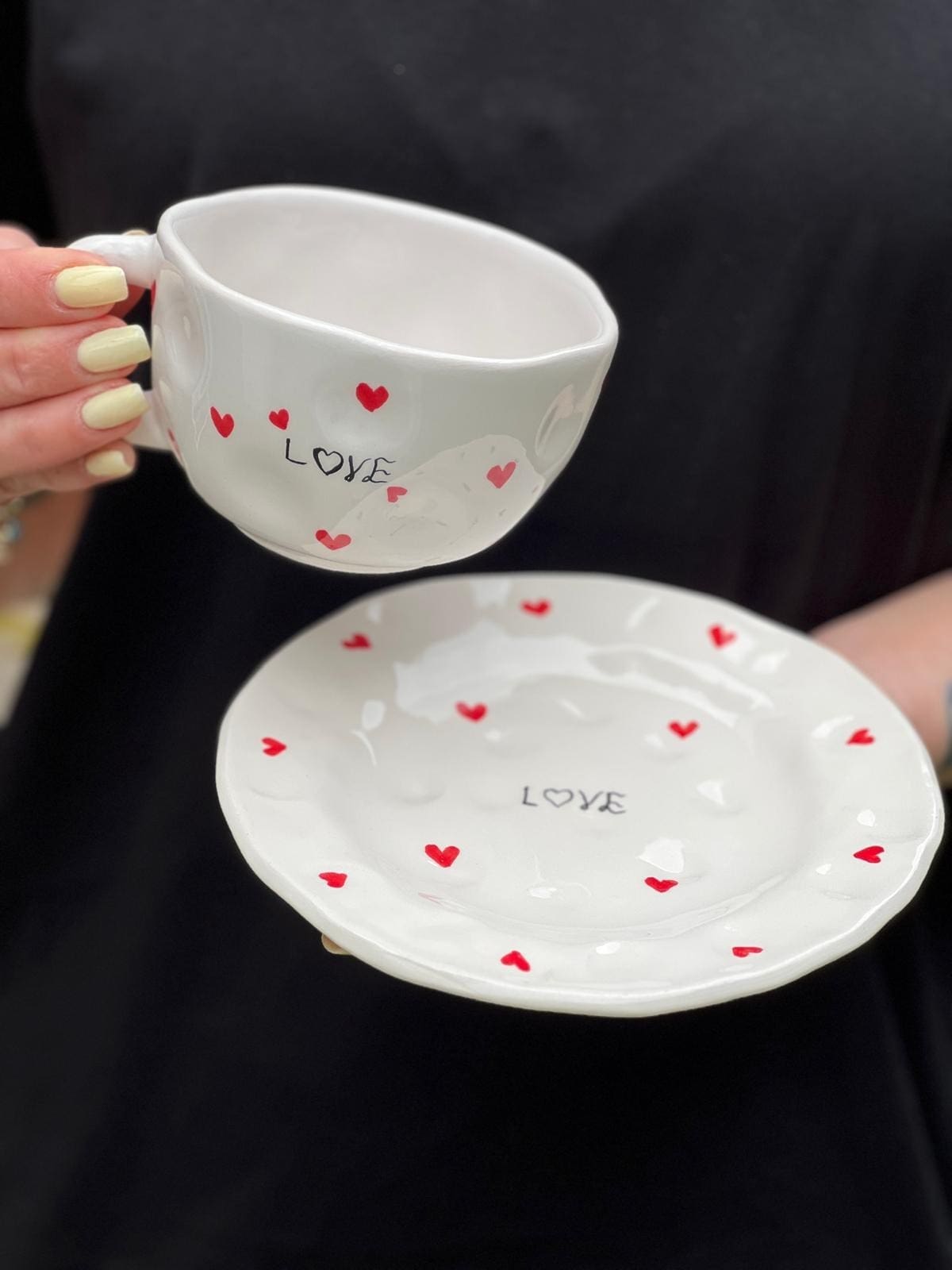 Aşkı ve romantizmi yansıtan el yapımı seramik kupa , üzerindeki kalp teması ve zarif “Love” yazısıyla kahve ve çay keyfinize anlam katıyor. 300 ml kapasitesiyle günlük kullanıma uygun olan bu özel tasarım kupa, sevgi dolu mesajıyla hem sizi hem de sevdiklerinizi mutlu edecek. Tamamen el işçiliğiyle üretilen bu seramik