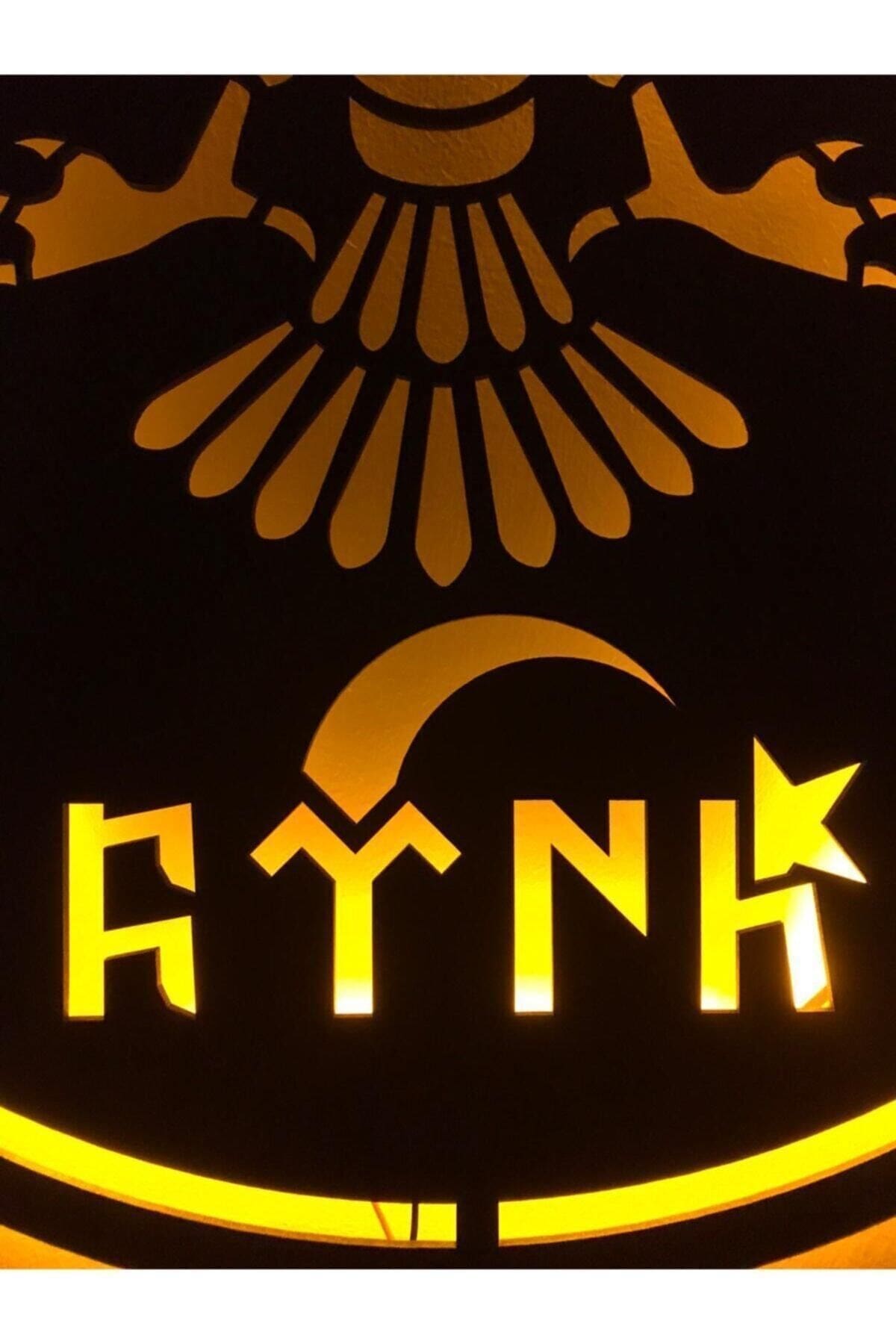 3 mm kalınlığında siyah mdf malzemeden lazer kesimle imal edilmektedir.; Ürünlerimizde 12 volt şerit led kullanılmaktadır.; Ürün boyutu: 51×51; Kargo 12v adaptör ve montaj malzemeleriyle gönderilir.; Adaptörü fişe taktığınızda ledleri yanar.; Ürünümüzde amber kullanılmıştır.; Ürünü askı aparatından kolayca duvara asabilirsiniz.; Gece lambası olarak kullanılabilir loş ışık sağlar.;