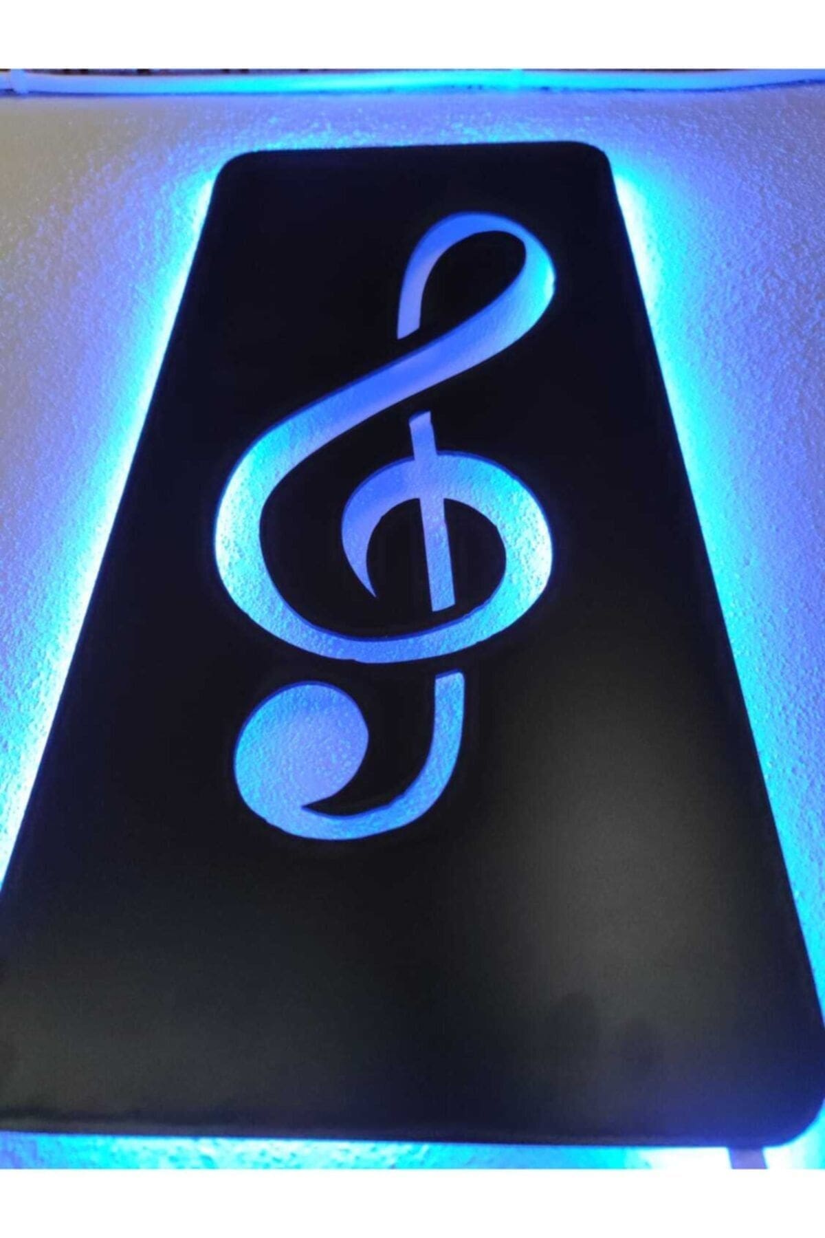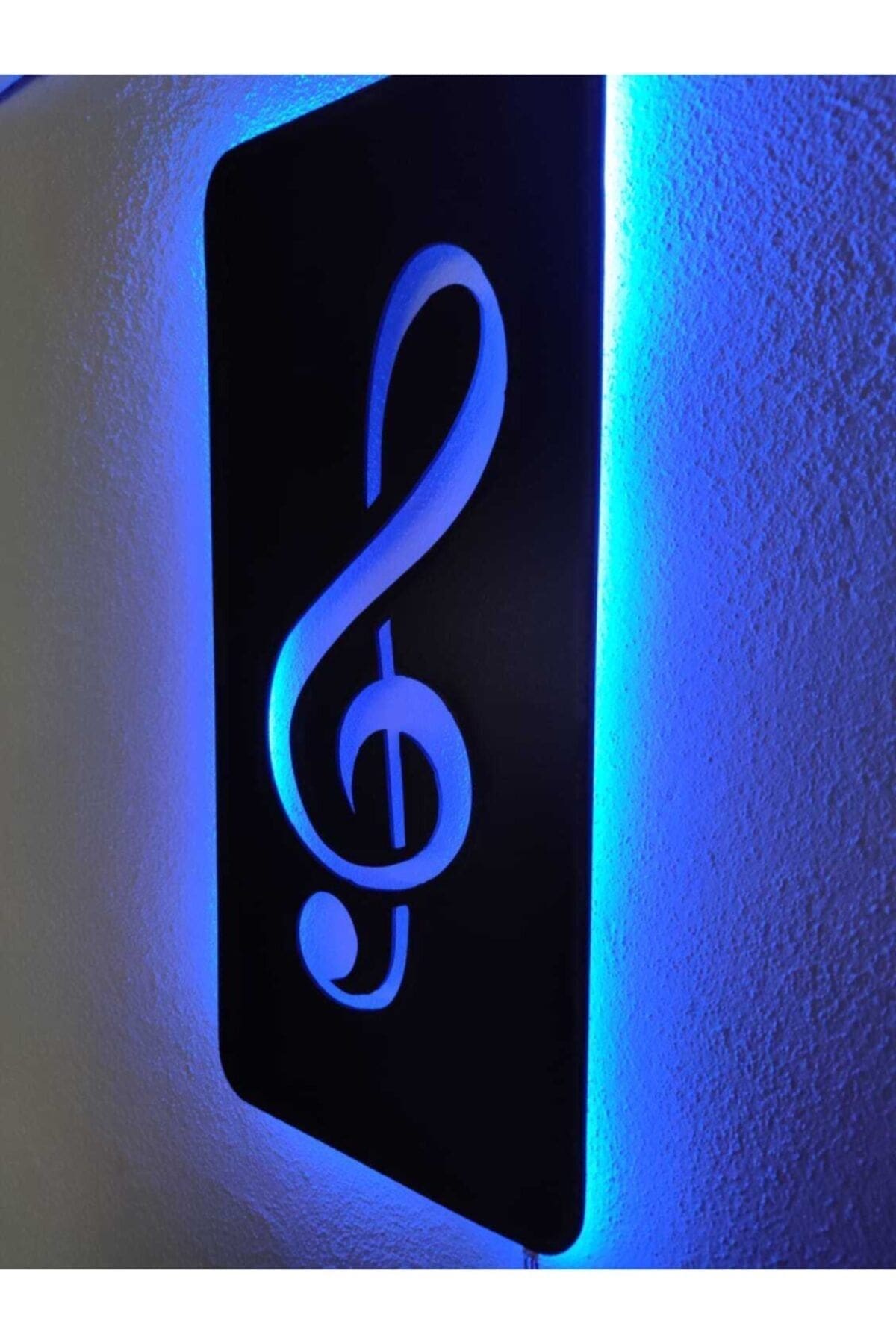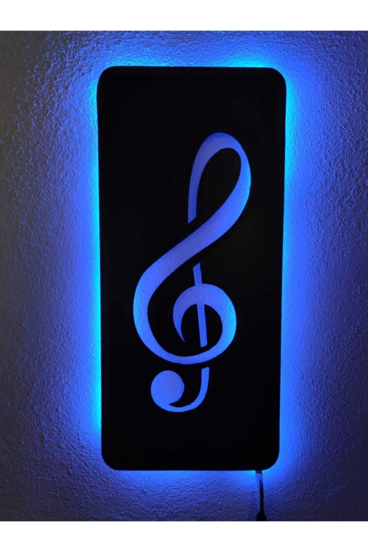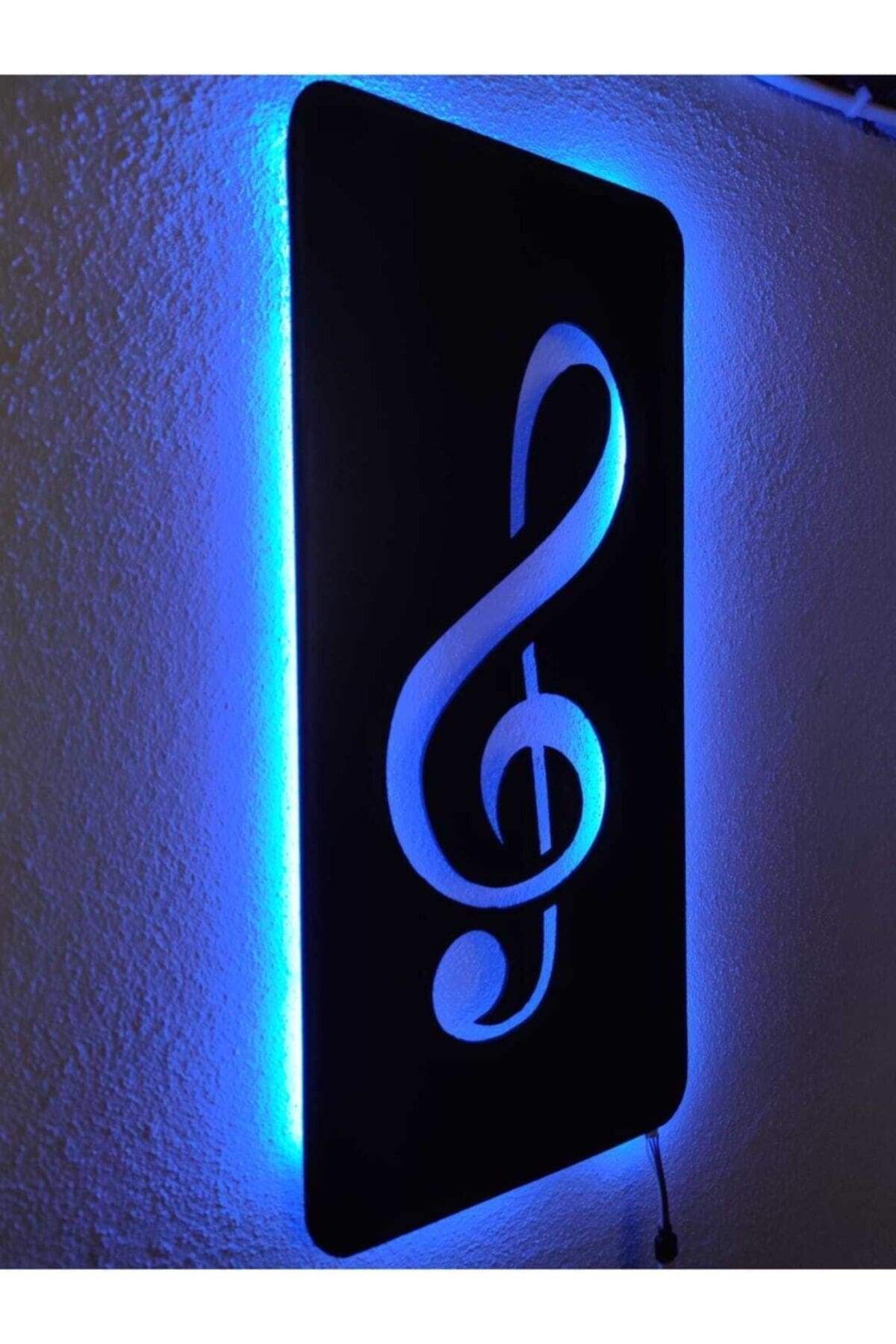 3 mm kalınlığında siyah mdf malzemeden lazer kesimle imal edilmektedir.; Tak çalıştır şeklinde hazır gönderilir.; Ürünlerimizde 12 volt şerit led kullanılmaktadır.; Ürün boyutu: 55×25; Kargo 12v adaptör ve montaj malzemeleriyle gönderilir.; Adaptörü fişe taktığınızda ledleri yanar.; Ürünümüzde mavi renk led kullanılmıştır.; Ürünü askı aparatından kolayca duvara asabilirsiniz.; Gece lambası olarak kullanılabilir loş ışık sağlar.; Müziği ritmi odanıza taşıyın;