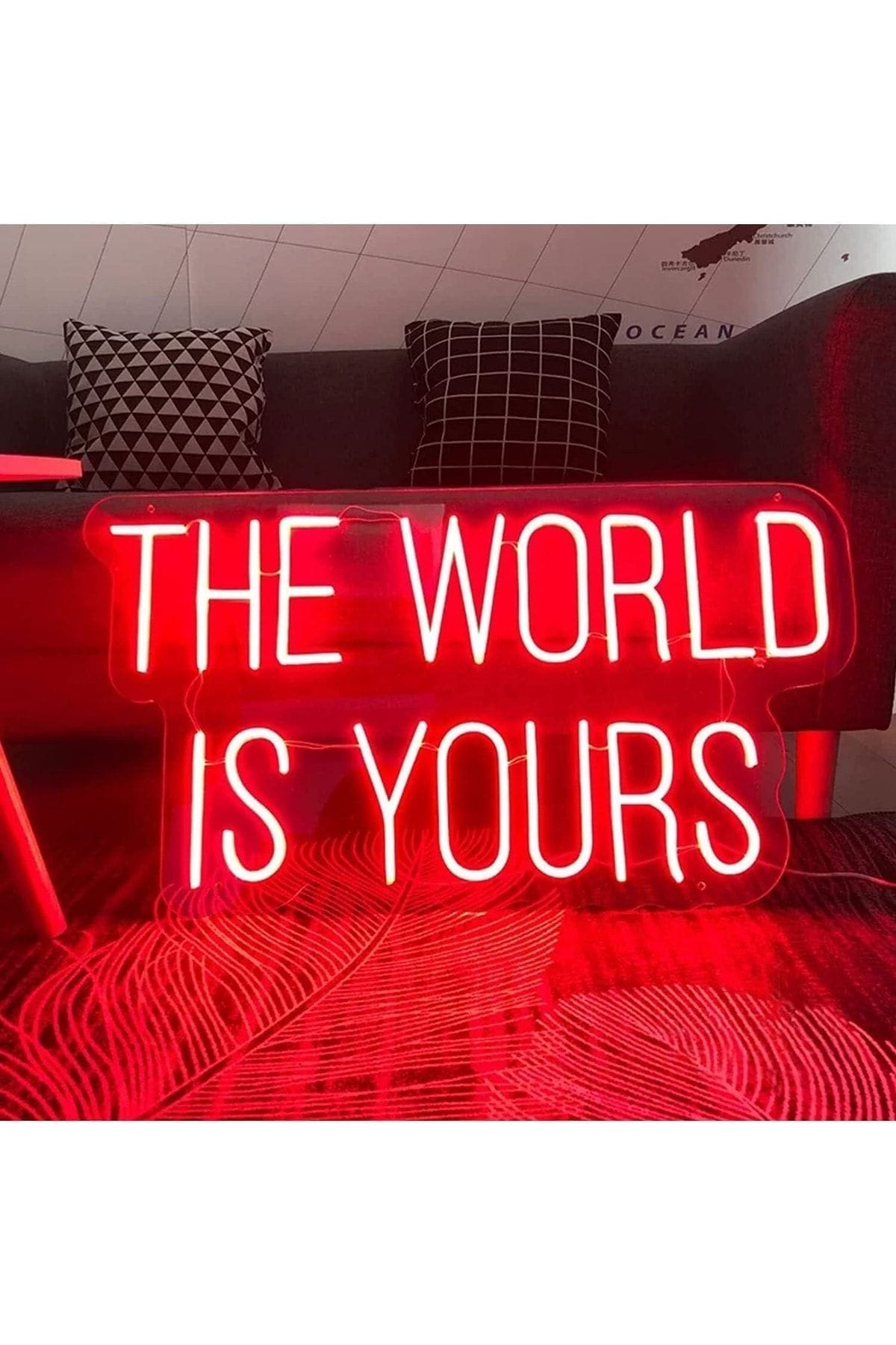 The World Is Yours Neon Tabela Neon Yazı Dekoratif Aydınlatma Ve Gece Lambası