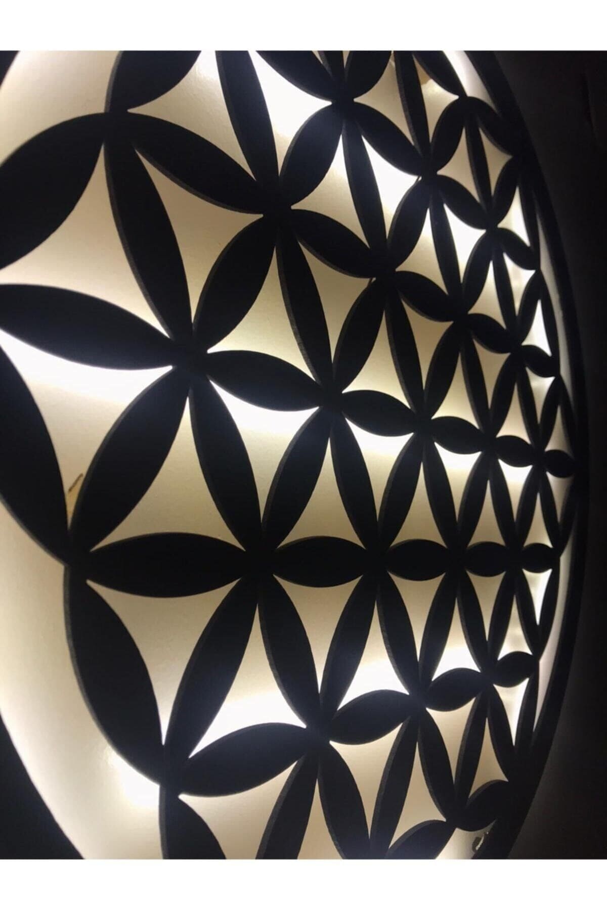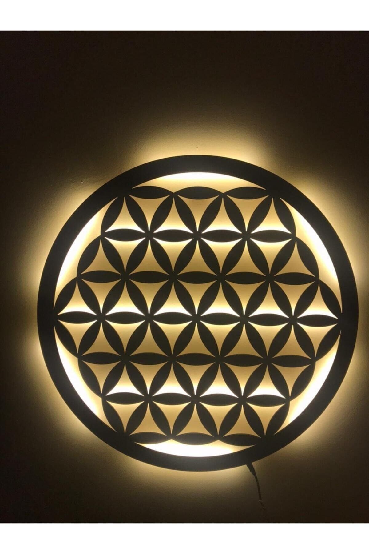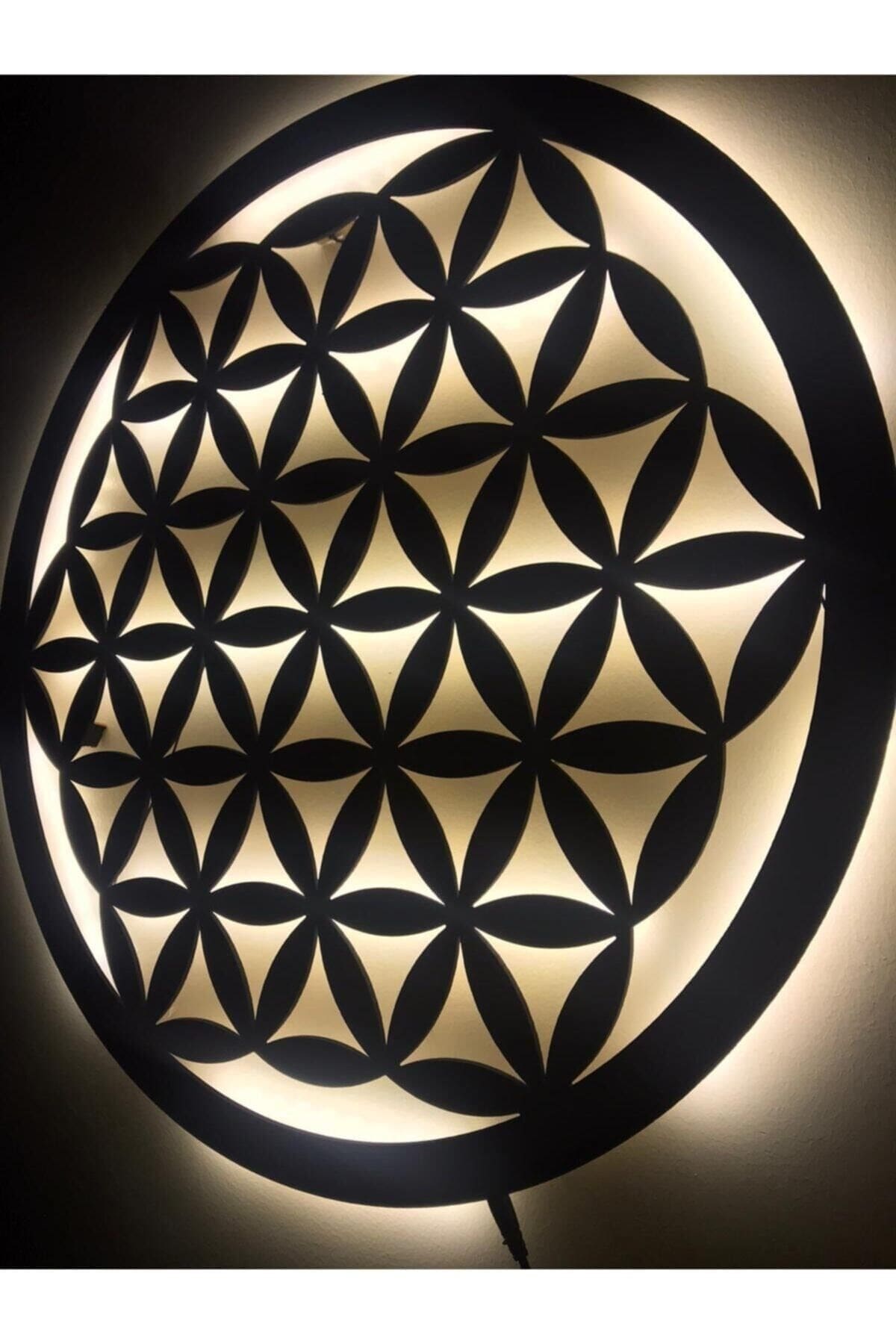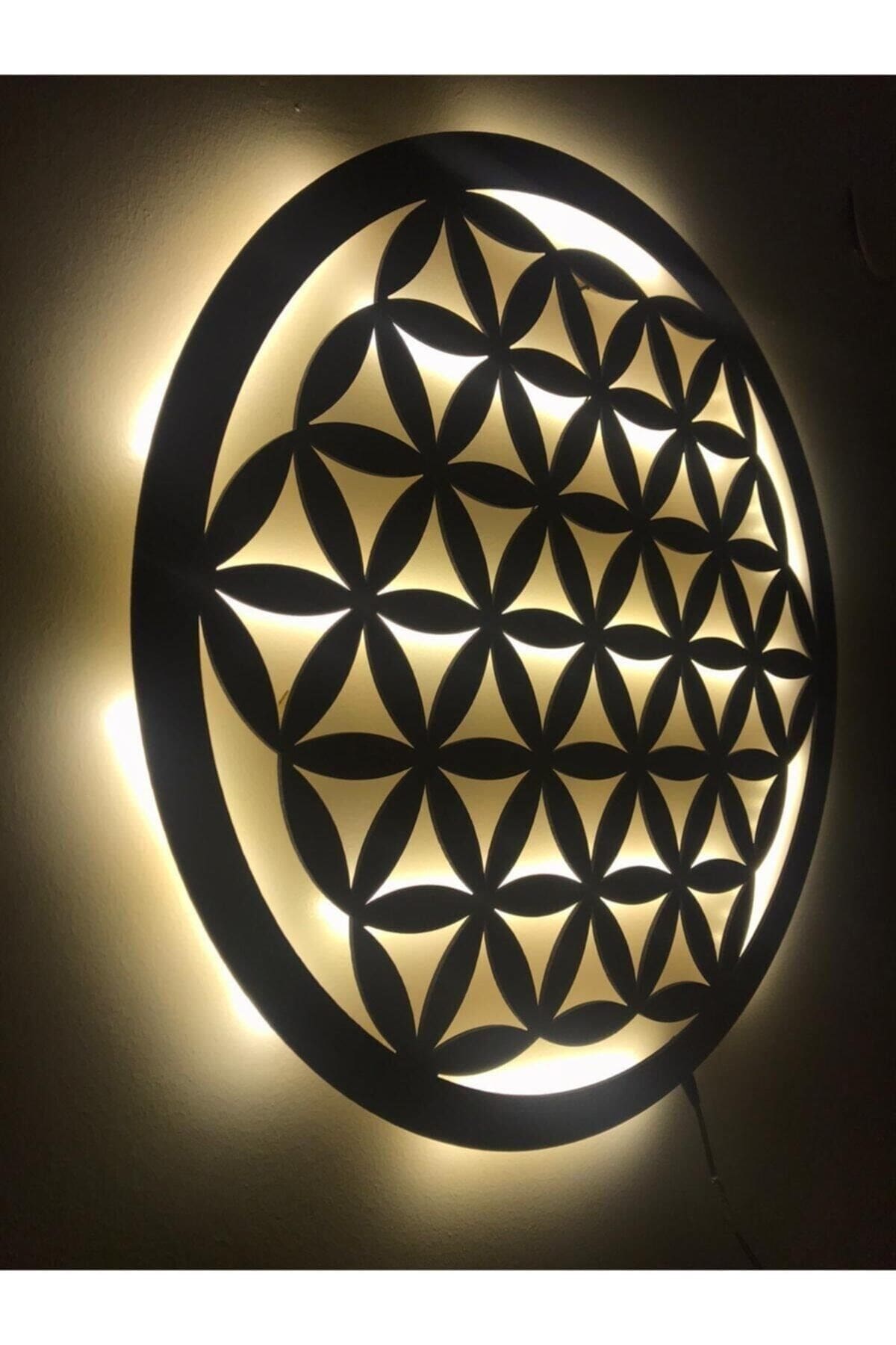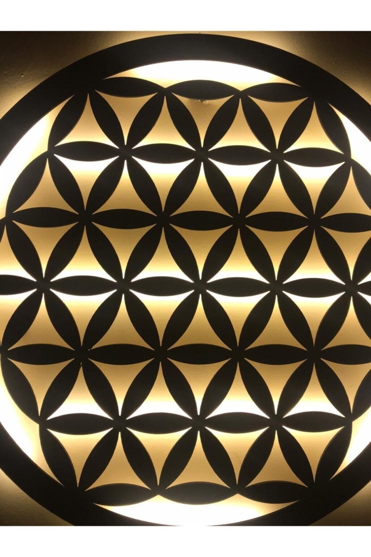 3 mm kalınlığında siyah mdf malzemeden lazer kesimle imal edilmektedir.; Ürünü çiviye asabilir yada çift taraflı bantla montajını sağlayabilirsiniz.; Ürünlerimizde 12 volt şerit led kullanılmaktadır.; Ürün boyutu : 52 x 52; 12 volt 1 amper fişli adaptör ile beraber yollanıcaktır.; Adaptörü fişe taktığınızda ledleri yanar.; Ürünümüzde günışığı renk led kullanılmıştır.; Gece lambası olarak kullanılabilir ortama loş ışık sağlar.; Odanıza , işyerlerinize ve duvarlarınıza renk katıcak bir dekorasyon ürünü.; Yaşam çiçeğinin enerjisini mekanlarınıza taşıyın.;