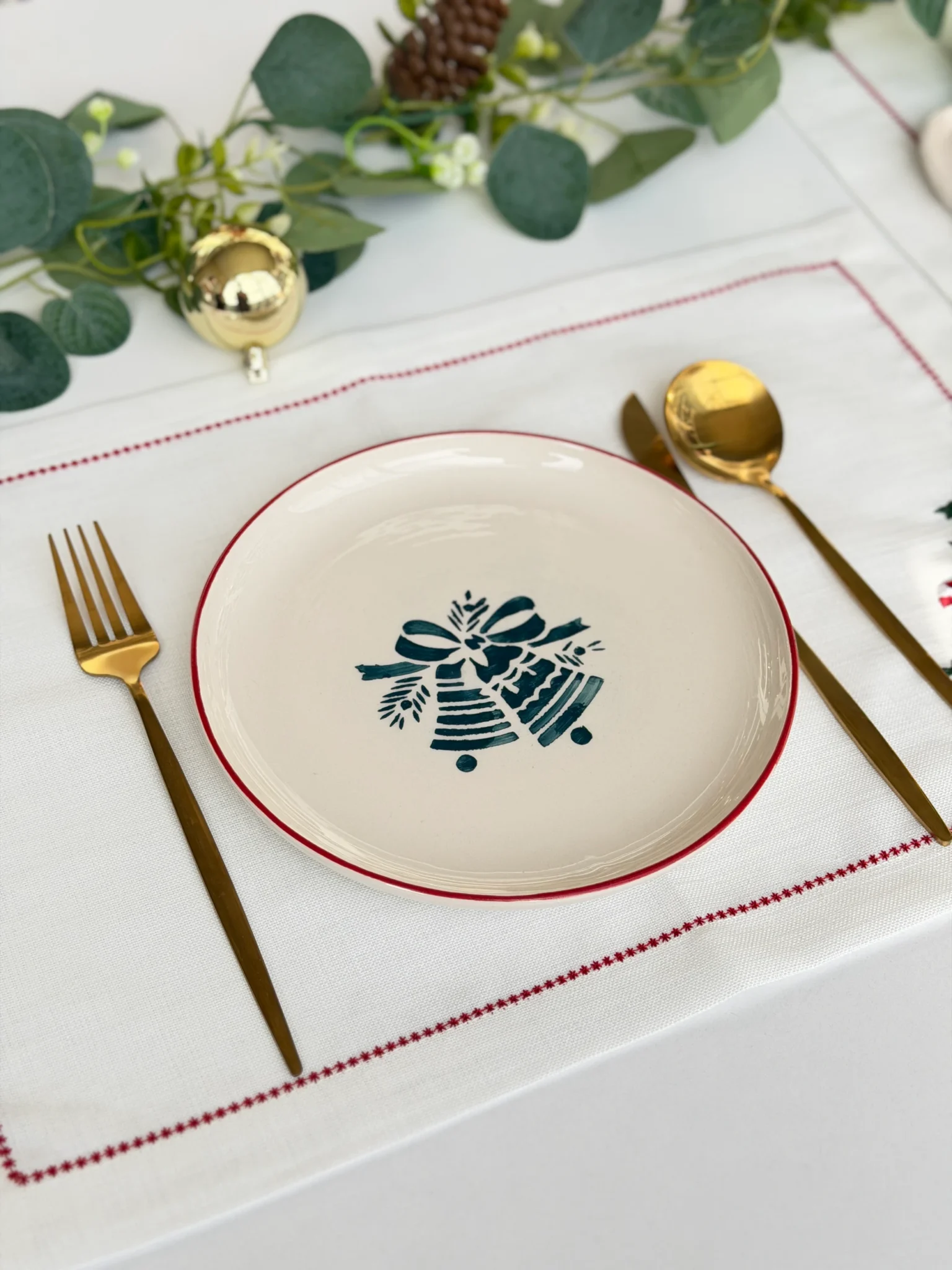 Yeni Yıl Çan Desenli Tabak Çap 21cm KARGO SÜRESİ 10-15 GÜNDÜR. 21 cm özel tasarım el yapımı seramik tabaklarımız, yılın en özel anlarına şıklık ve sıcaklık katmak için özenle hazırlandı. Her biri el emeğiyle şekillenen bu tabaklar, yeni yıl ruhunu sofranıza taşıyan eşsiz bir dokunuş sunar. Not: El yapımı ürün olduğu iç