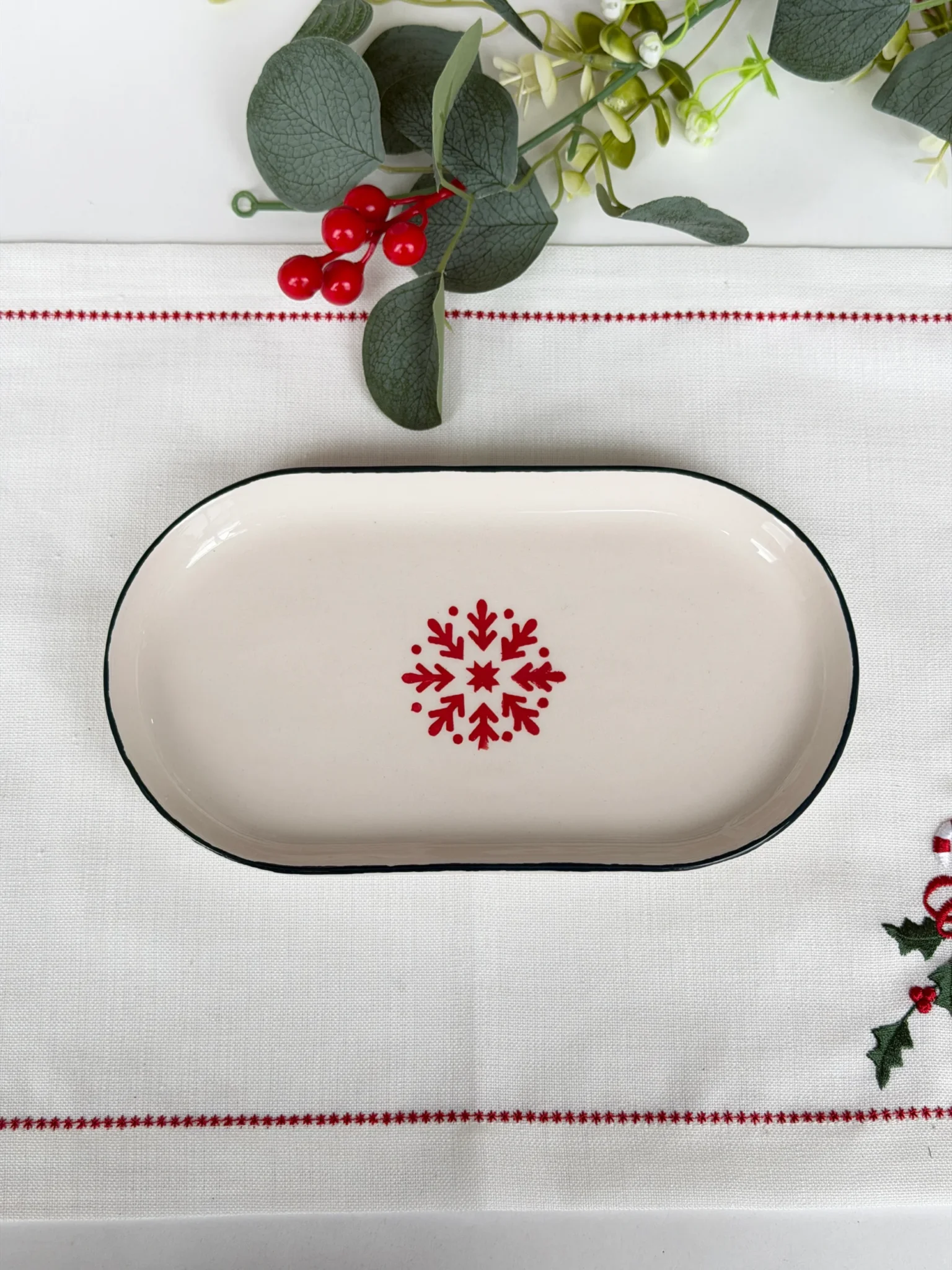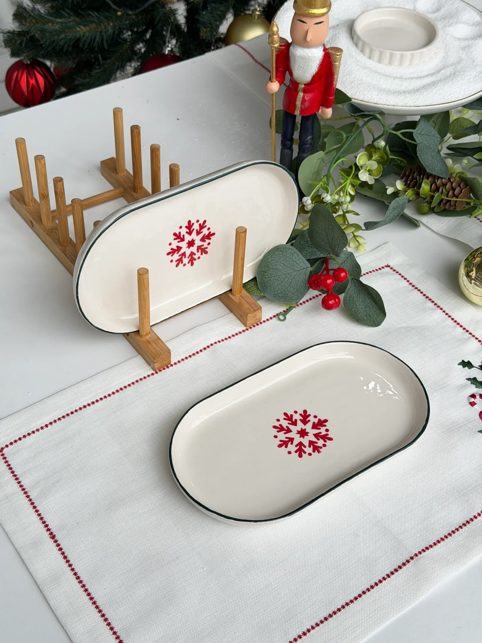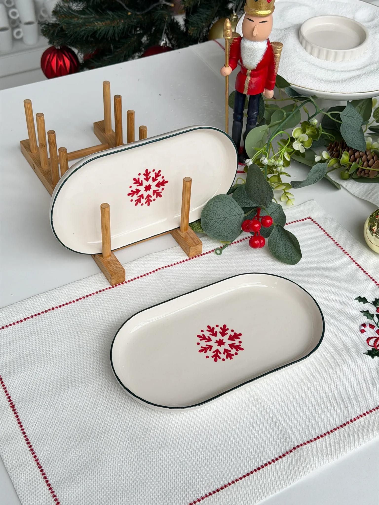 Yeni Yıl Kar Tanesi Kayık Tabak