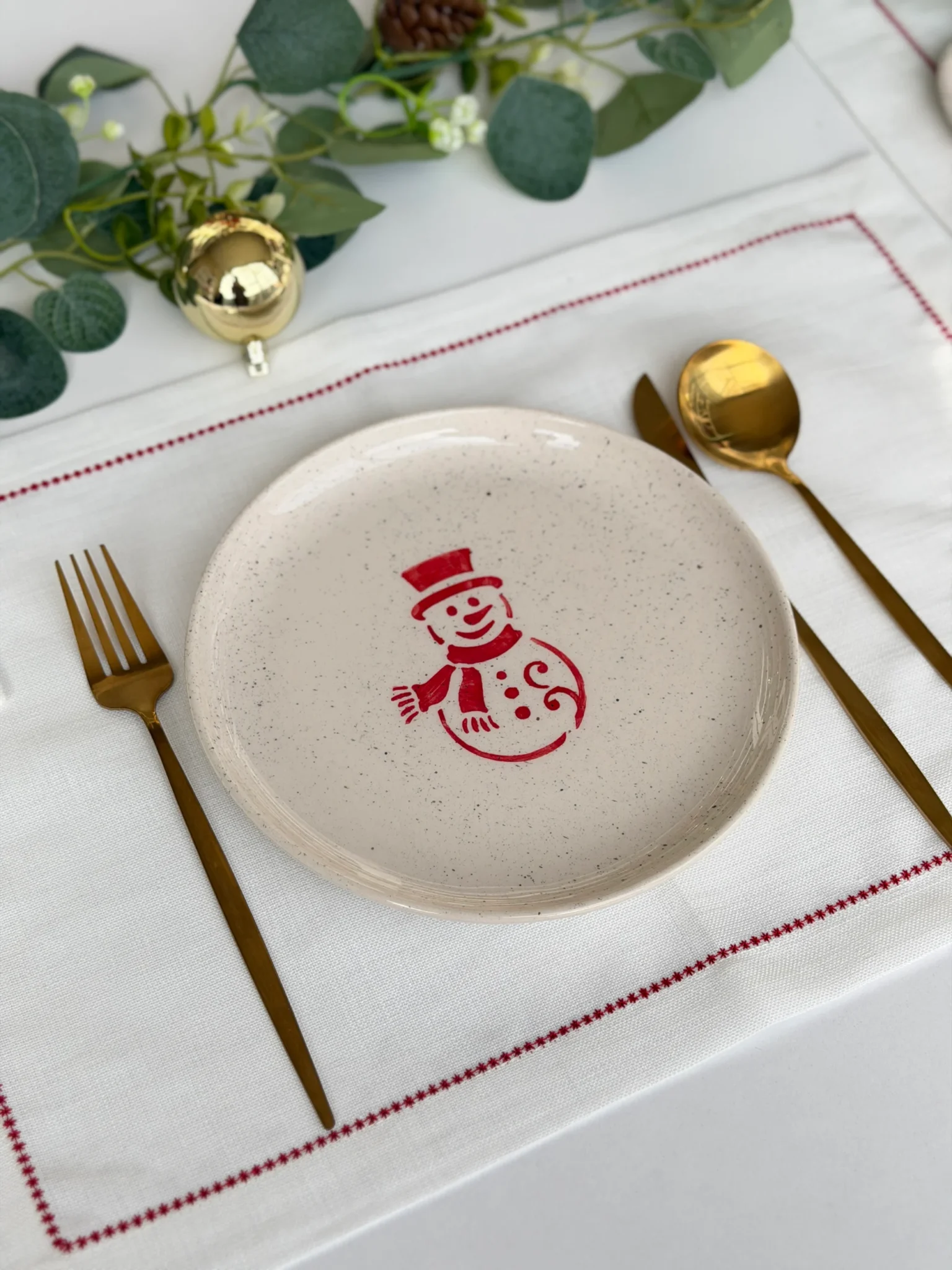Yeni Yıl Kardan Adam Desenli Tabak Çap: 21 cm Adet: 1 Kargo Süresi: 10–15 gün 21 cm özel tasarım el yapımı seramik tabaklarımız, yılın en özel anlarına şıklık ve sıcaklık katmak için özenle hazırlandı. Her biri el emeğiyle şekillenen bu tabaklar, yeni yıl ruhunu sofranıza taşıyan eşsiz bir dokunuş sunar.