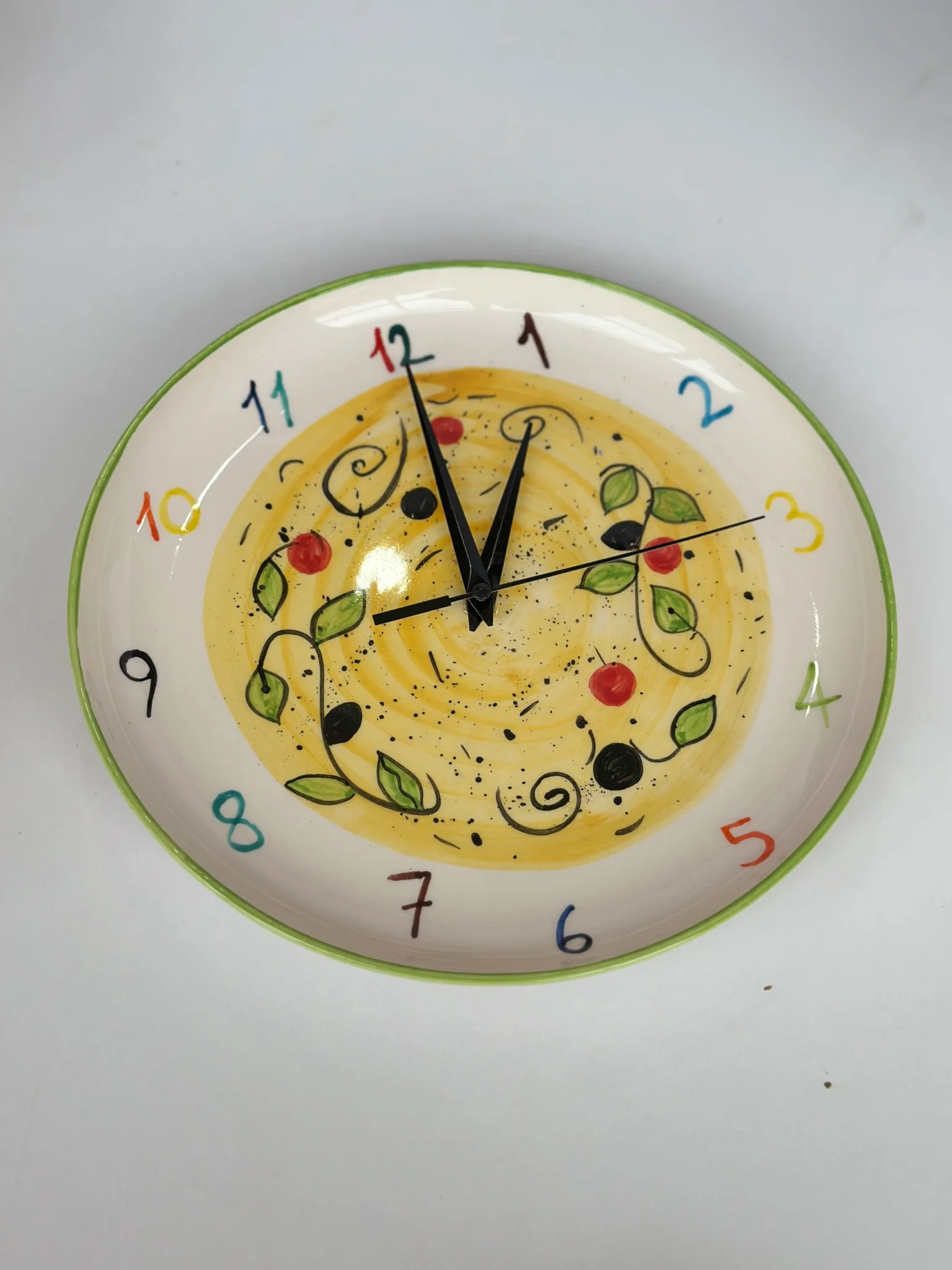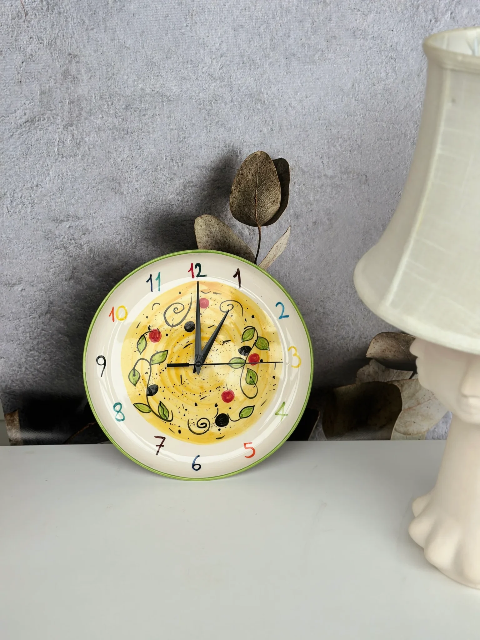 Zeytin Temalı El Yapımı Seramik Mutfak Saati – 27 cm